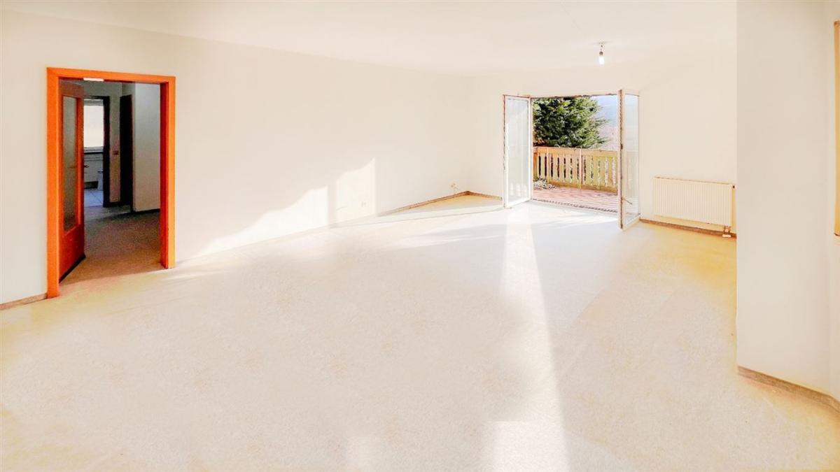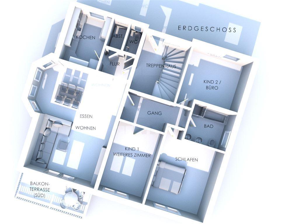 Die Erdgeschosswohnung bietet mit ca. 110 m² ein lichtdurchflutetes und weitläufiges Wohnambiente. Die großzügige Balkonterrasse sowie die zahlreichen Südfenster schaffen eine helle, offene Atmosphäre. Das weitläufige Wohnzimmer überzeugt mit einem erkerförmigen Bereich, der sich perfekt als Essbereich eignet.
