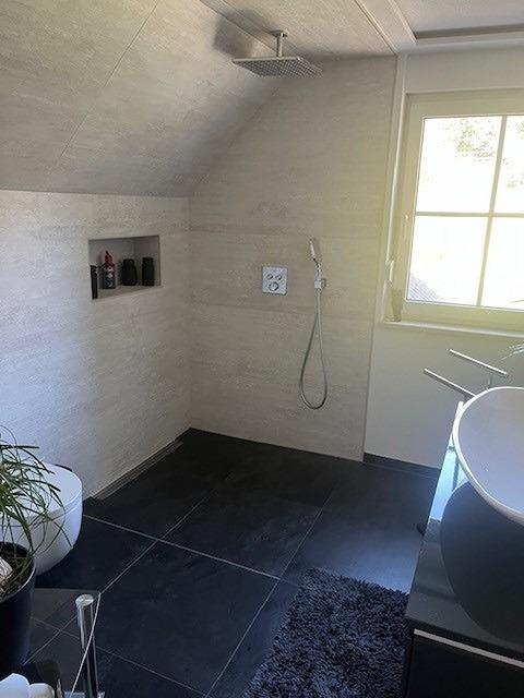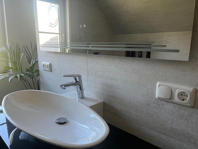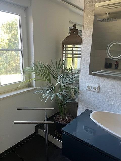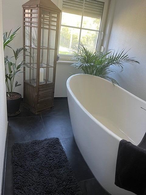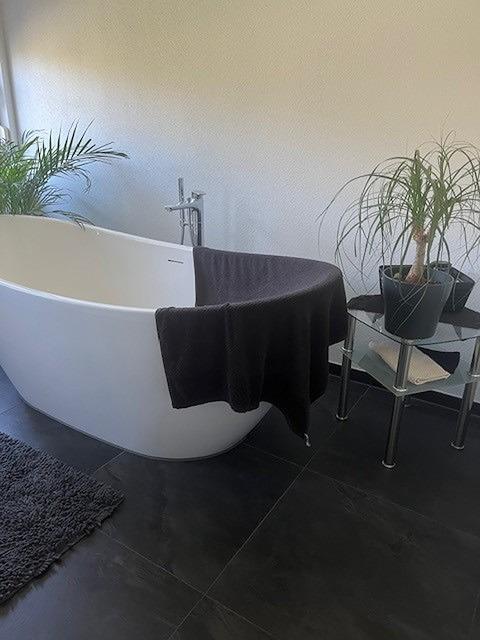 Modernes Badezimmer mit hochwertiger und stilvoller Ausstattung mit Wanne und Dusche.