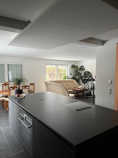 Offener Wohn- und Küchenbereich mit moderner Einbauküche – der perfekte Treffpunkt für die Familie