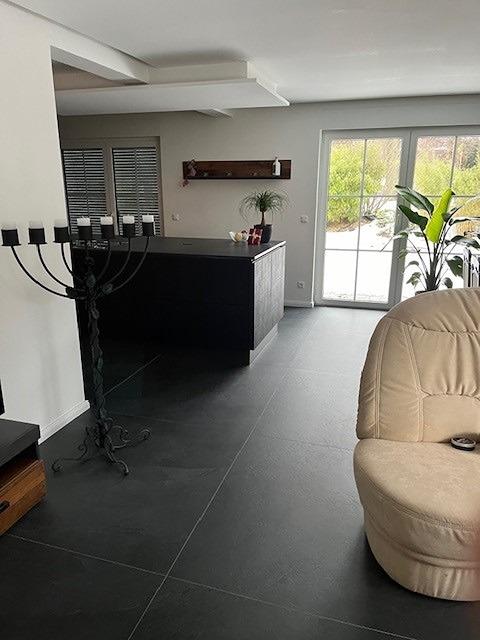 Die gehobene Innenausstattung bietet hohen Wohnkomfort. Dazu zählen auch die Fußbodenheizung, ein Gäste-WC, Rolläden (im EG elektrisch), eine neue und hochwertige maßangefertigte Einbauküche, schicke Terrasse mit Direktzugang aus der hellen Küche mit ihren bodentiefen Fenstern.