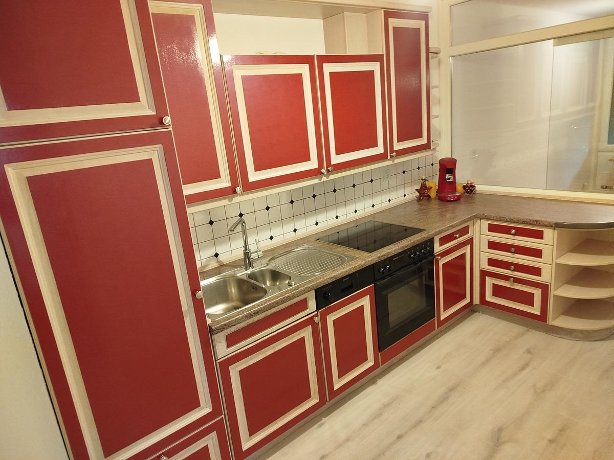 - Küche im zeitlosen Retrostyle mit neuem Kühlschrank, Backofen und Induktionskochfeld