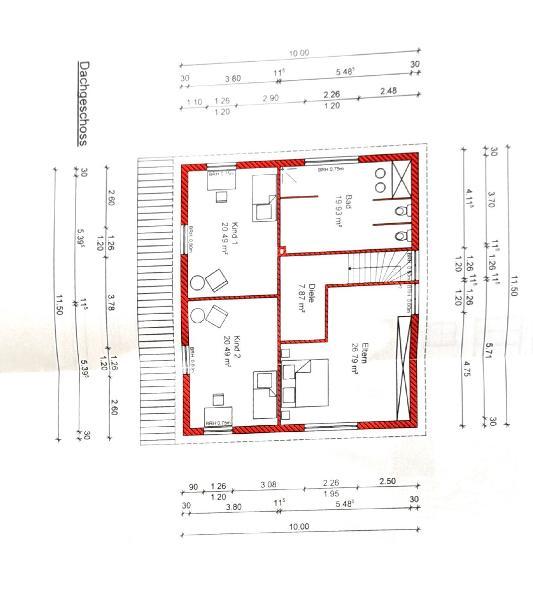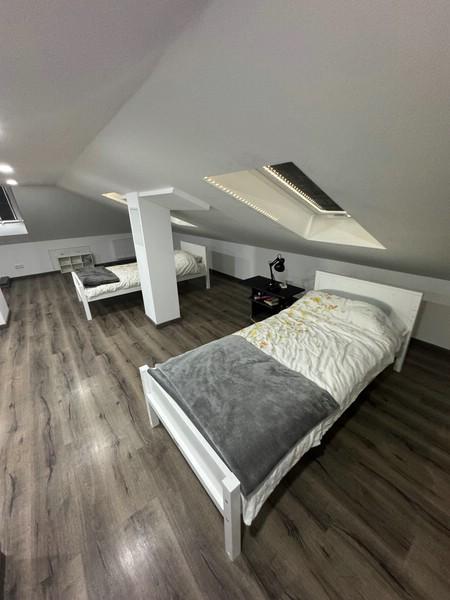 Die Gesamtwohnfläche von rund 270 m² gliedert sich wie folgt: Im Erdgeschoss stehen etwa 132,25 m² zur Verfügung, das Kellergeschoss umfasst ebenfalls 132,25 m², wovon rund 59,92 m² zu Wohnzwecken ausgebaut sind. Zusätzlich wurde eine Ausbaufläche von etwa 29,26 m² geschaffen. Das Dachgeschoss bietet rund 115 m² Wohnfläche. Ohne den Ausbau ergibt sich somit eine Gesamtwohnfläche von etwa 247 m². Die Raumaufteilung umfasst drei Zimmer im Kellergeschoss, vier Zimmer im Erdgeschoss sowie ein großes Zimmer im Dachgeschoss mit einer Fläche von etwa 74 m². Zudem besteht die Möglichkeit, eine Einliegerwohnung einzurichten.