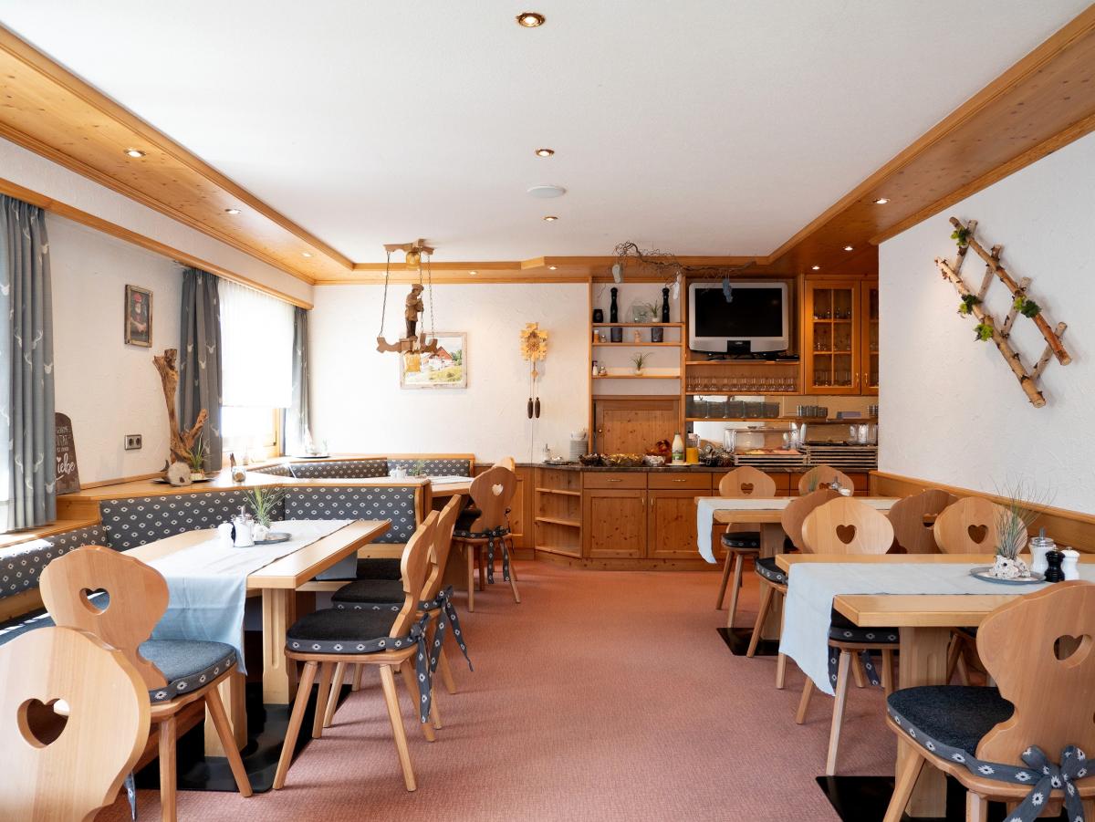 Gemütlicher Gastraum mit Frühstückstheke und Bar