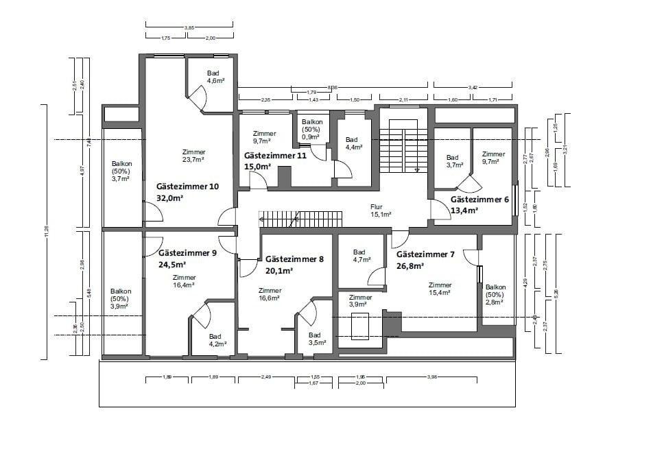 13 Gästezimmer, davon 8 Doppelzimmer, 4 Einzelzimmer und 1 Familienzimmer