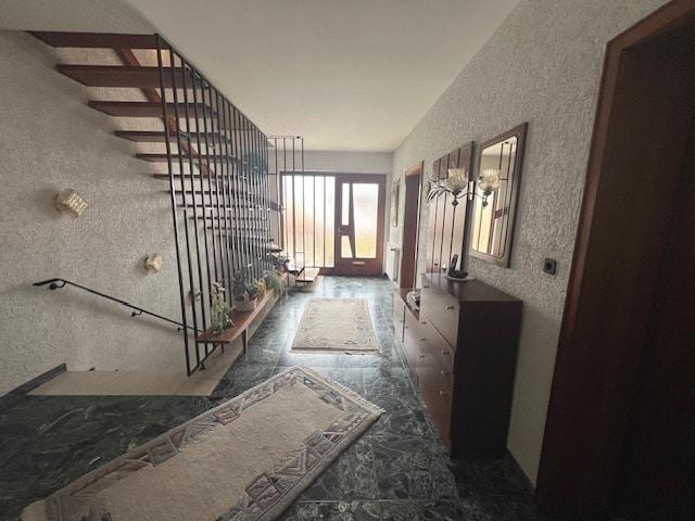 Der einladende, geräumige Eingangsbereich im Erdgeschoss vermittelt direkt ein Gefühl von Geborgenheit. Das Haus verfügt über diverse Bodenbeläge wie Fliesen, Laminat und Teppichböden.