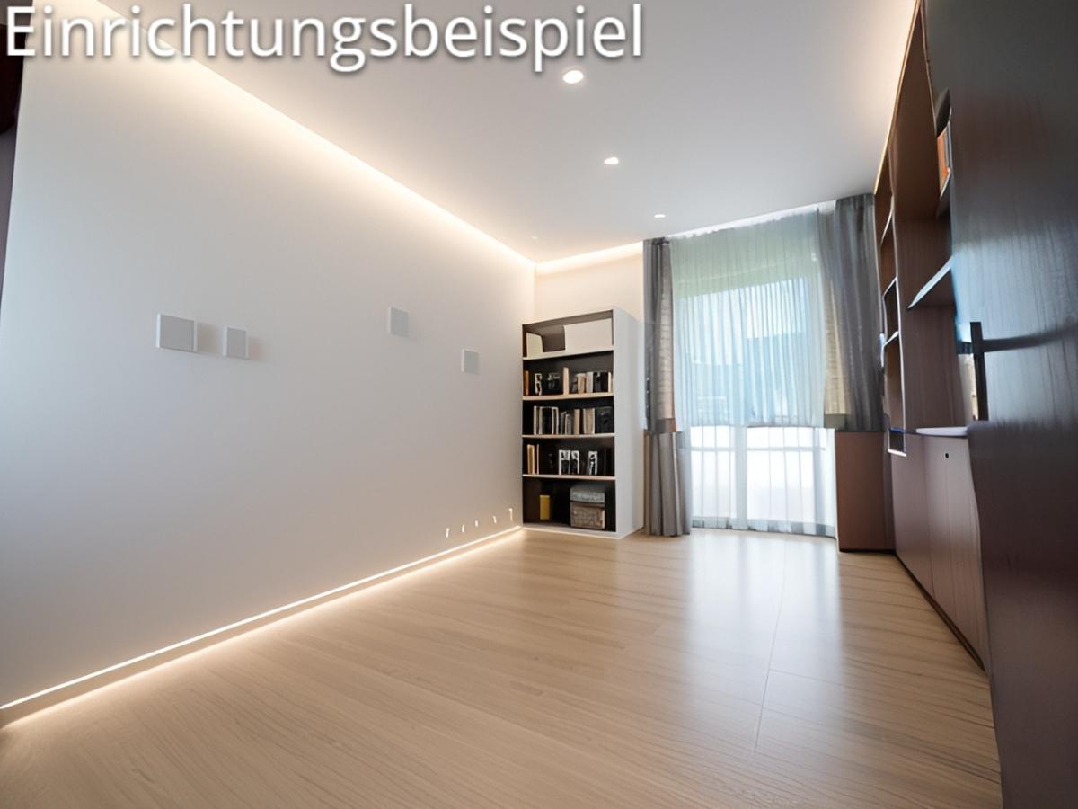 Diele, Büro, kleiner Flur, Schlaf-/Gästezimmer mit Zugang zu Terrasse und Garten, Ankleidezimmer, Abstellkammer, großes Tageslicht-Bad mit Wanne und Dusche, großes lichtdurchflutetes Wohnzimmer, Esszimmer, Küche mit Zugang zu Terrasse und Garten
