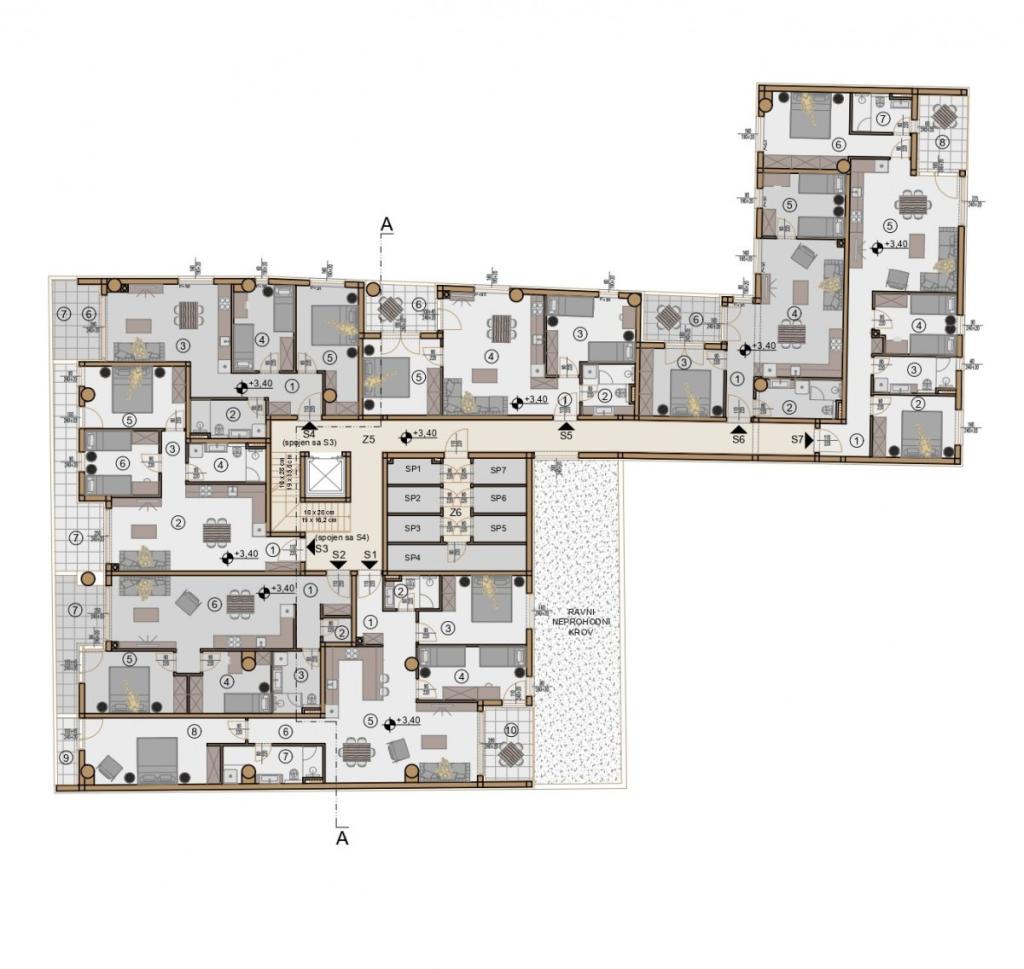 Die hier angebotene Wohneinheit (S8 laut Planunterlagen) befindet sich im zweiten Obergeschoss und besteht aus: einem Eingangsbereich mit Garderobe, einem offen gestalteten Wohn- und Esszimmer mit offenere Küche, drei Schlafzimmer, zwei Badezimmer und zwei wunderschönen Loggia.