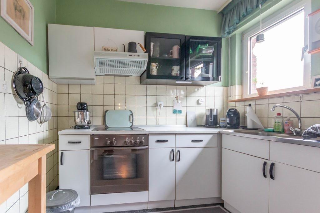 Flur mit Zugang zu allen Räumen, Küche, Wohn-/Esszimmer, zwei gut geschnittene Schlafzimmer und ein modernisiertes Badezimmer mit bodentiefer Dusche.