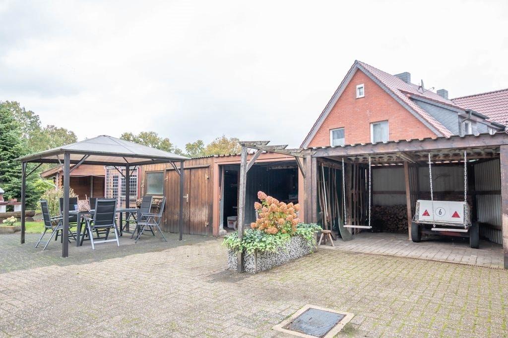 Drei Garagen, zwei Carports und ein Gartenhaus komplettieren dieses Angebot.