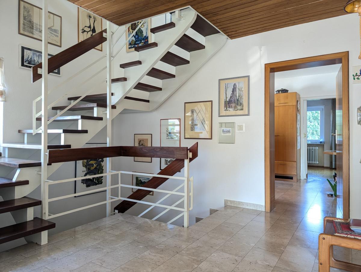 Im Erdgeschoss erwartet Sie ein großzügiger Wohn- und Essbereich mit direktem Zugang zur Terrasse und in den schön angelegten Garten. Perfekt für entspannte Stunden im Freien und gesellige Grillabende. Die angrenzende Küche bietet ausreichend Platz für eine moderne Einbauküche und einen kleinen Essbereich. Ein Gäste-WC, Garderobe und separates Büro rundet das Raumangebot auf dieser Ebene ab.
