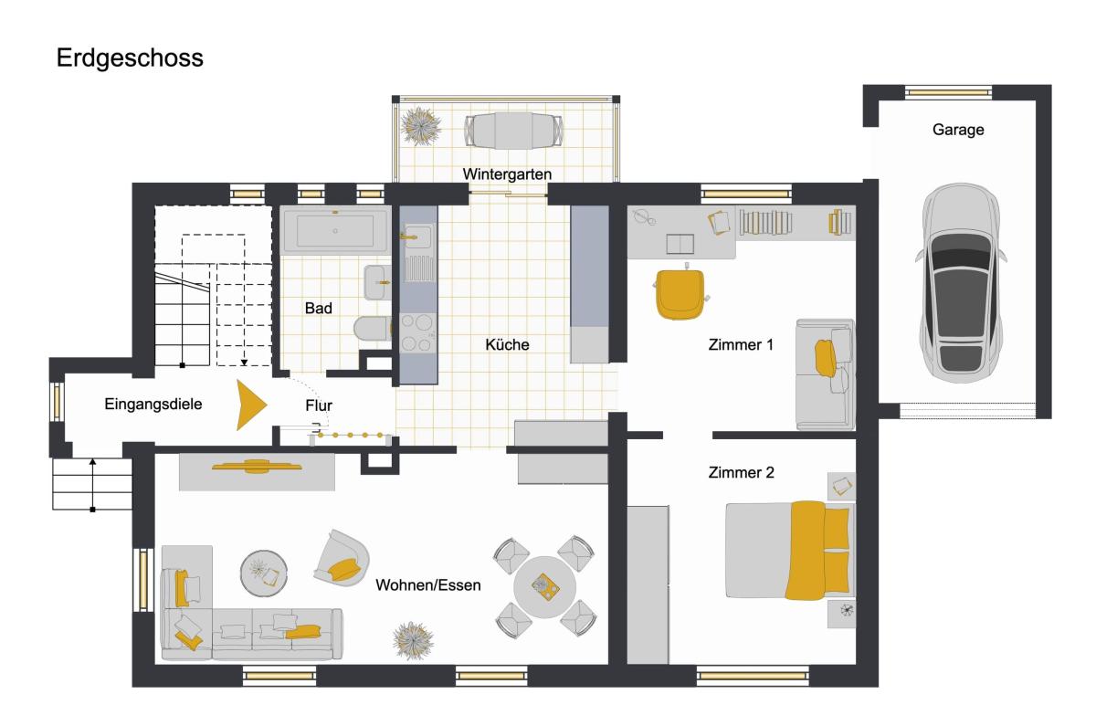Zwei getrennte Wohneinheiten (4 Zimmer EG, 3 Zimmer OG)