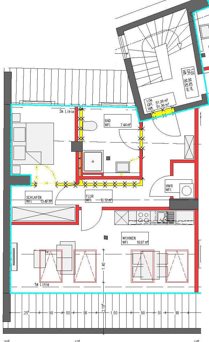 Renovierte Zweizimmerwohnung im Dachgeschoß.