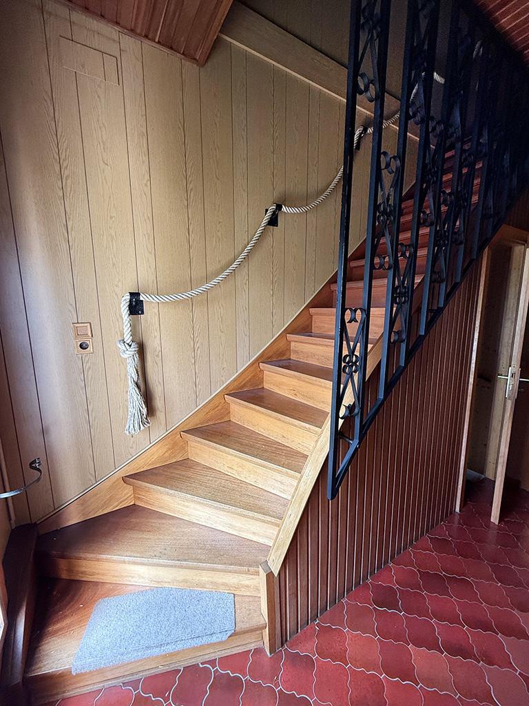 Im Obergeschoss stehen eine Küche mit Zugang zum Wohnzimmer, 2 Schlafzimmer und ein Tageslichtbad mit Wanne und Dusche sowie einem separaten WC zur Verfügung.