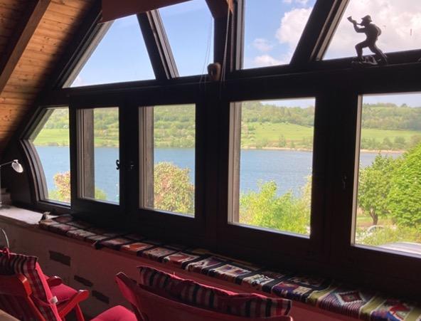 Wohnfläche 95 m², Grundstücksfläche ca. 350 qm, Massivhaus in offener Bauweise mit großer verglaster Galerie und große Terrasse, beides mit Seeblick in unmittelbarer Nähe des Schalkenmehrener Maares