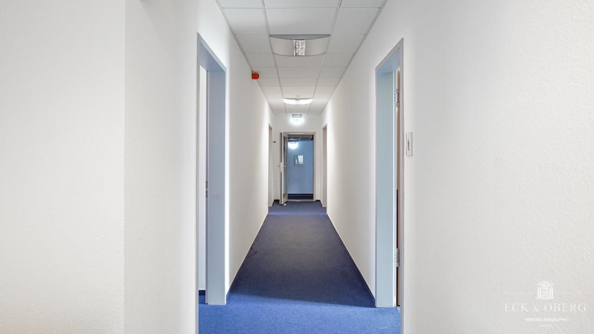 Die großzügige Fläche ist funktional aufgeteilt und bietet flexible Nutzungsmöglichkeiten. Mehrere separat zugängliche Büroräume ermöglichen konzentriertes Arbeiten oder Teamarbeit in kleinerer Runde. Große Fensterflächen sorgen für reichlich Tageslicht und ein freundliches Raumgefühl.