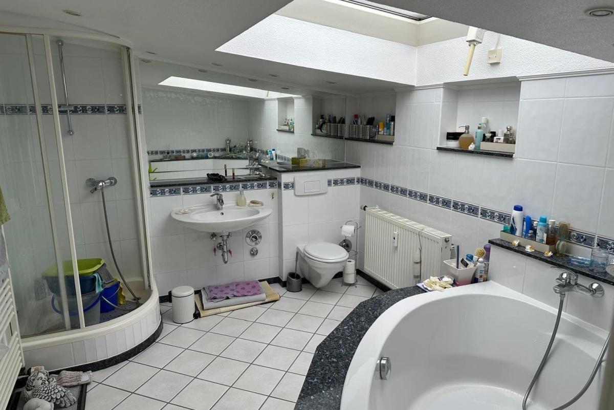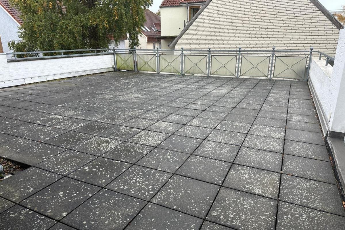 3-Zimmer-Eigentumswohnung mit großer und sonniger Dachterrasse ( ca. 50 m² groß ), Diele mit elektrisch zu öffnenden Oberlicht, Tageslichtbad mit Dusche, Wanne, wandhängendem WC, Handtuchheizkörper, Waschmaschinenanschluss und elektrisch zu öffnenden Oberlicht, Gäste WC, Küche mit Einbauküche und angrenzendem Vorratsraum.