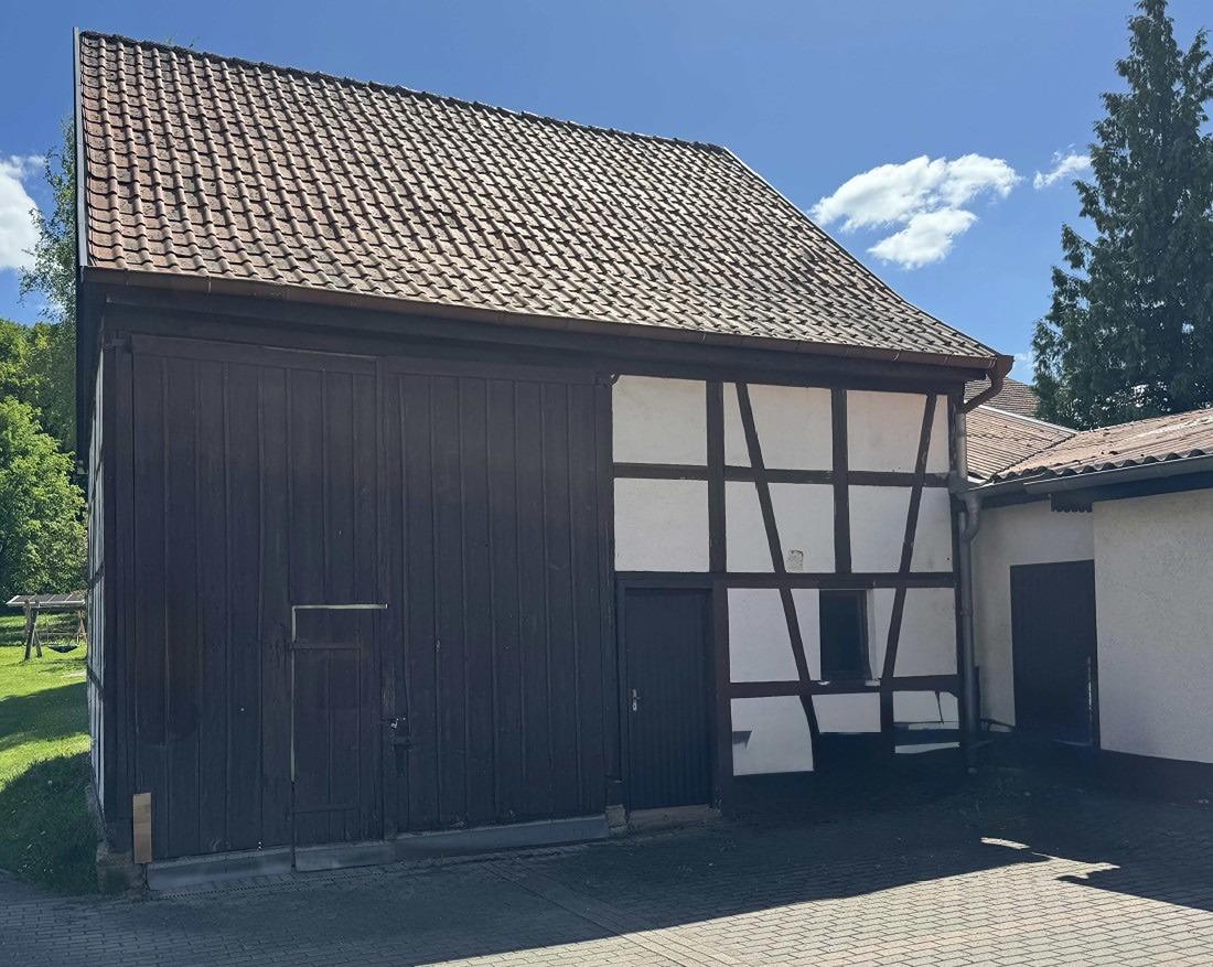 Auf dem Grundstück befindet sich ein Mehrfamilien-Wohnhaus, eine Doppelgarage und eine Scheune.