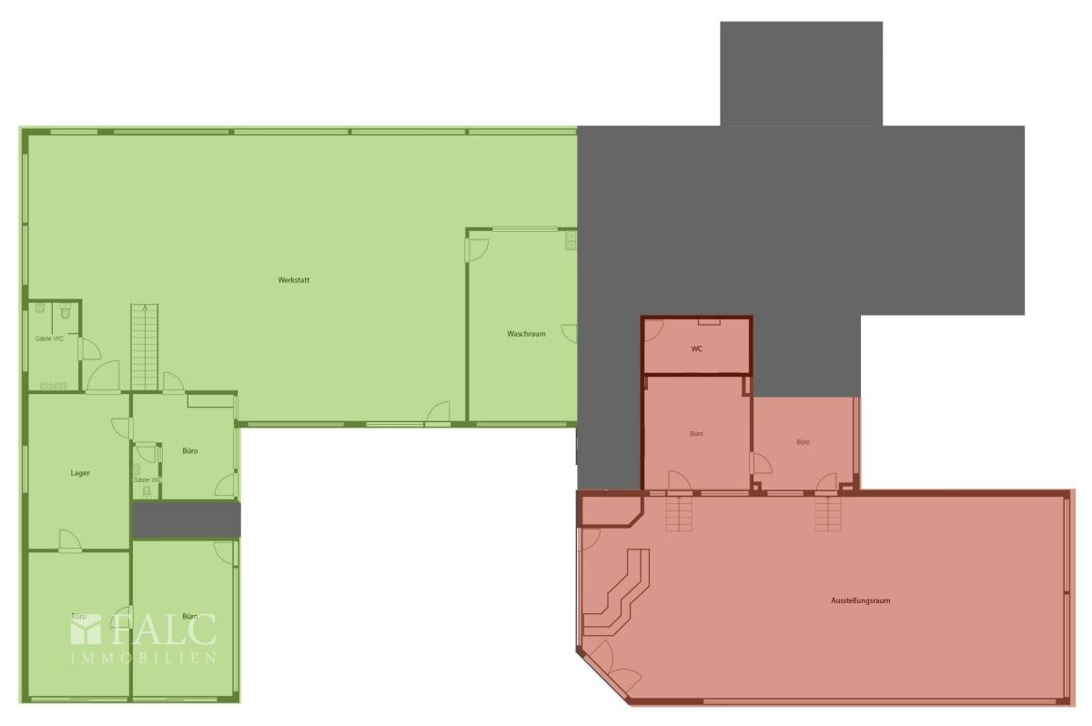 - zusätzliche Nutzung des ehemaligen Ausstellungsraums inkl. der angrenzenden Büro- und Sozialräume gemäß des Exposés mit der Objektnummer FALC-VS-76183.