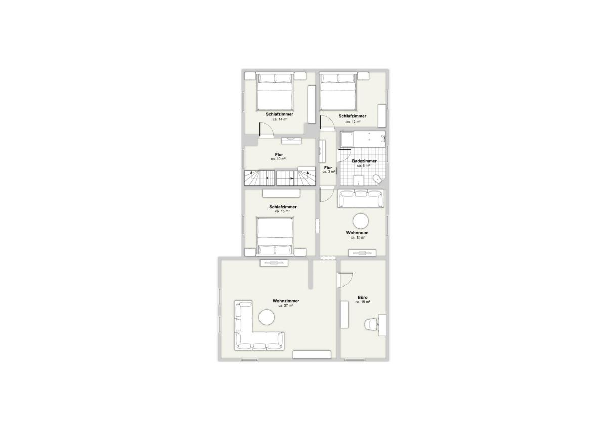 • Fünf Zimmer, Tageslichtbad mit Wanne und Dusche