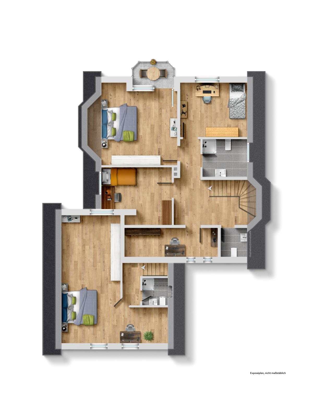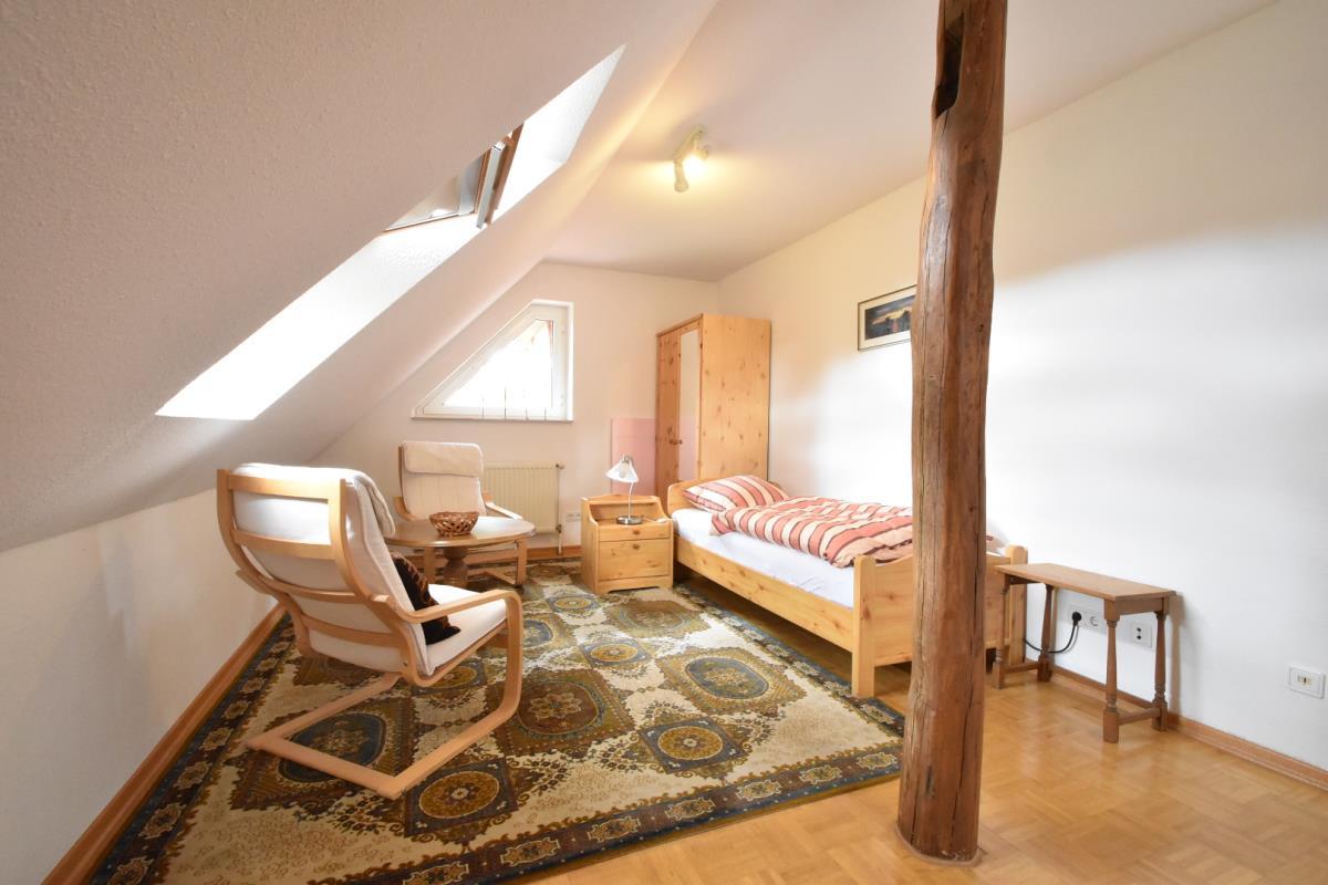 Die Einliegerwohnung erstreckt sich ebenfalls auf Erd- und Dachgeschoss, eine weitere Unterteilung wäre denkbar, die Räume unterteilen sich wie folgt...