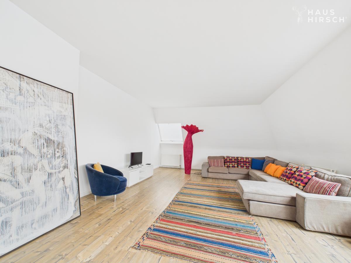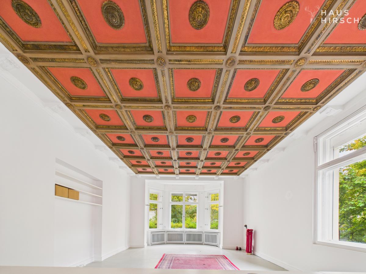 Neben dem beeindruckenden Innenraum bietet das Anwesen auch einen separaten Gartentrakt, zwei Balkone und einen parkähnlichen Garten mit Garage, Kellerraum, auffahrbarer Rampe und bis zu drei Außenstellplätzen.