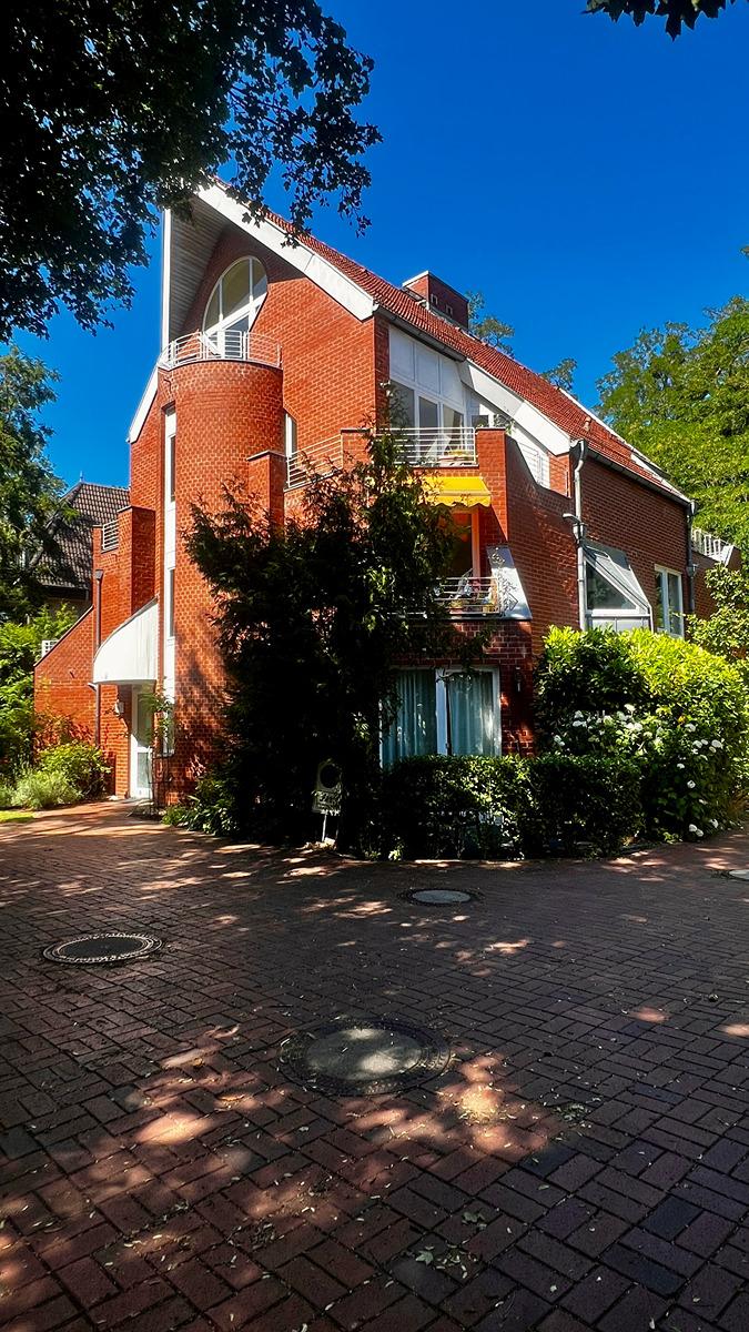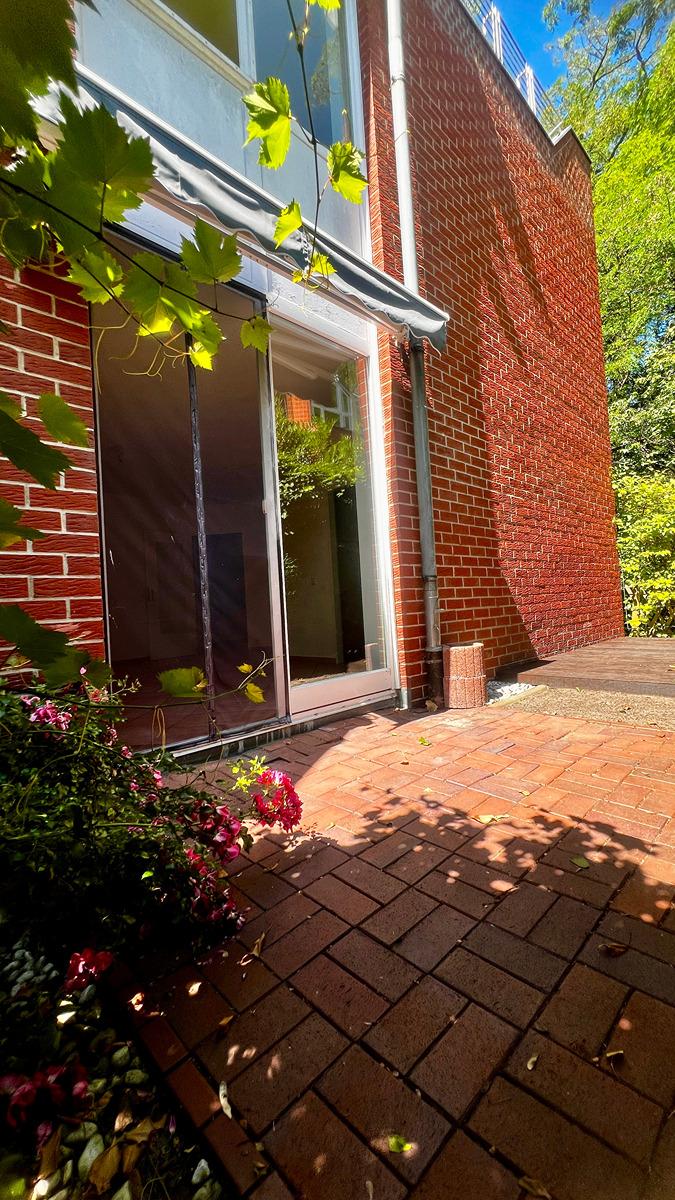 Die helle und freundliche Maisonette-Wohnung (75 qm) liegt im Erdgeschoss und 1. OG eines Architektenwohnhauses Gebaut wurde es in seiner einzigartigen, besonderen Optik im Jahr 1984 und befindet sich nicht direkt an der Strasse Ritterfelddamm, sondern durch die PKW Zufahrt zur Wohnanlage in ruhiger zweiter Reihe. Die Wohnung hat einen eigenen Hauseingang (Haus-in-Haus-Atmosphäre). Die Wohnung verfügt über 3 Zimmer, Küche, Diele, Badezimmer mit Badewanne, Gäste WC sowie einem direkten Zugang von Wohnzimmer zur Terrasse (kleiner eigener Garten). Eine neue Markise dient zum Schutz vor den Sonnenstrahlen. Zur Wohnung gehört ein Keller und ein Gemeinschaftsfahrradkeller. Im Erdgeschoss befindet sich ein kleiner Eingangsbereich (Flur), das Gäste WC und die Wendeltreppe zum 1.OG. Vom Flur gelangt man in ein großzügiges helles Wohnzimmer, von dem die Küche sowie die Terrasse (Garten) abgeht. Im 1.OG gehen vom Flur 2 großzügige Zimmer sowie ein Vollbad mit Badewanne ab. Die Wohnung wurde kernsaniert. Das Bad ist neu, alle Fenster und Türen wurden professionelle aufgearbeitet. Alle Zimmer wurden neu gestrichen.