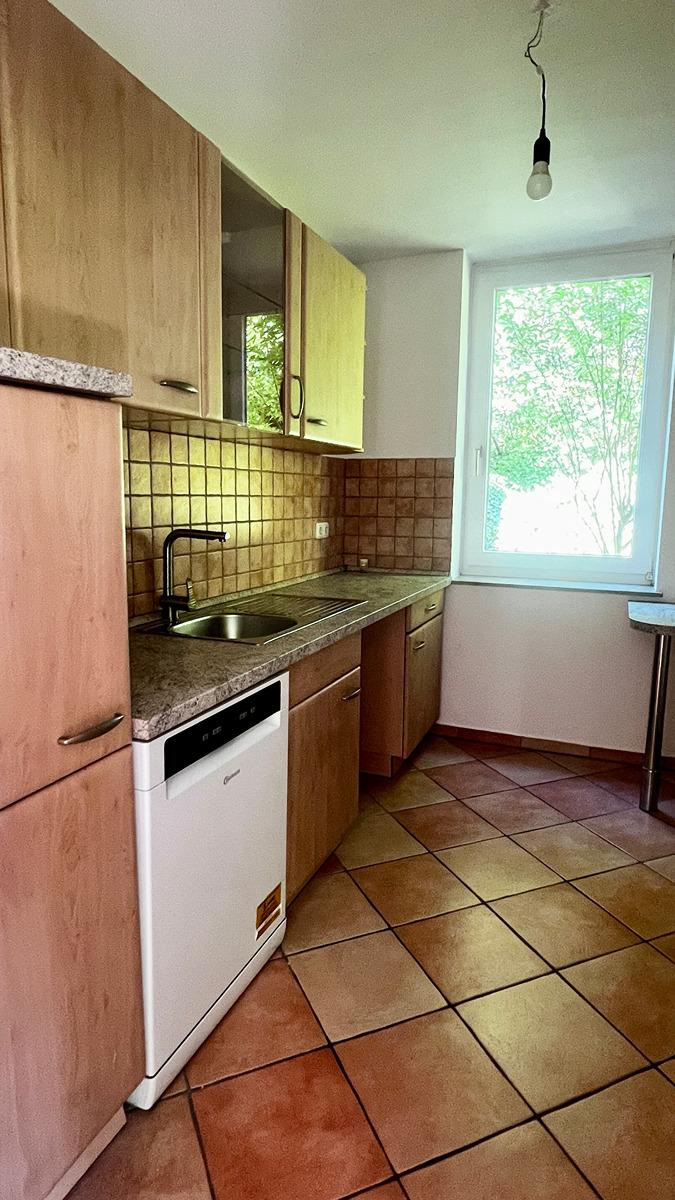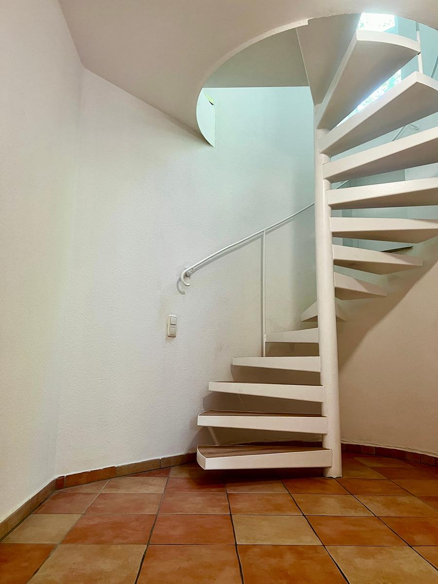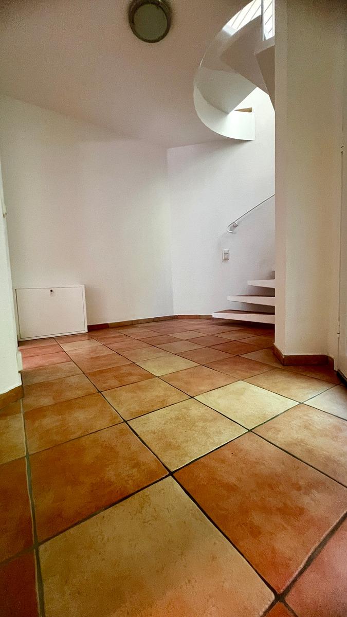 Bemerkungen: Im gesamten unteren Wohnbereich (Flur, Küche, Wohnzimmer sowie Wendeltreppe) befinden sich diagonal verlegte Terrakottafliesen. Die Einbauküche besitzt einen Kühlschrank mit Gefrierfach, Herd mit Cerankochfeld und Dunstabzugshaube sowie einen Geschirrspüler. Anschlüsse für Waschmaschine sind vorhanden. Im oberen Wohnbereich wurde Venyl verlegt. Das neue Wannenbad verfügt über einen modernen Waschtisch mit Spiegelschrank sowie einen mit Glimmereffekt gespachtelten Bogen. Das Gäste WC mit Waschbecken wurde ebenfalls gefliest. Die Beheizung der Wohnung erfolgt über eine Fußbodenheizung. Die Warmwasseraufbereitung erfolgt über Durchlauferhitzer in Küche, Gäste WC und Bad. Die Wohnung verfügt über Kabel TV. Zur Wohnung gehört ein trockener Keller sowie ein Gemeinschaftsfahrradkeller.