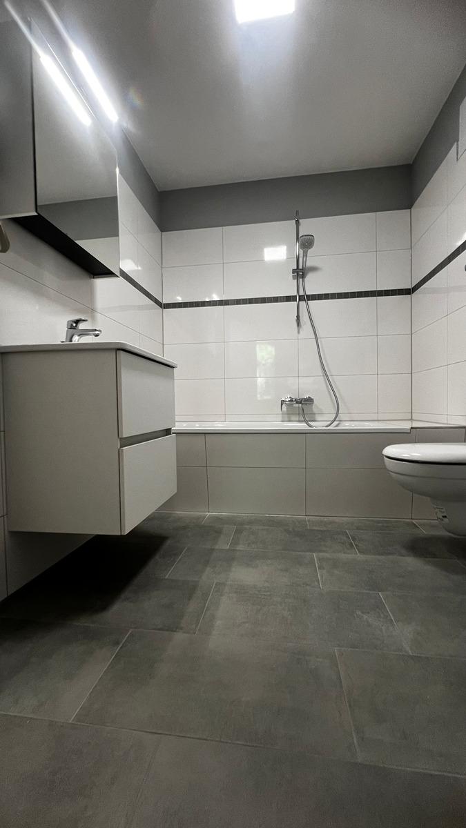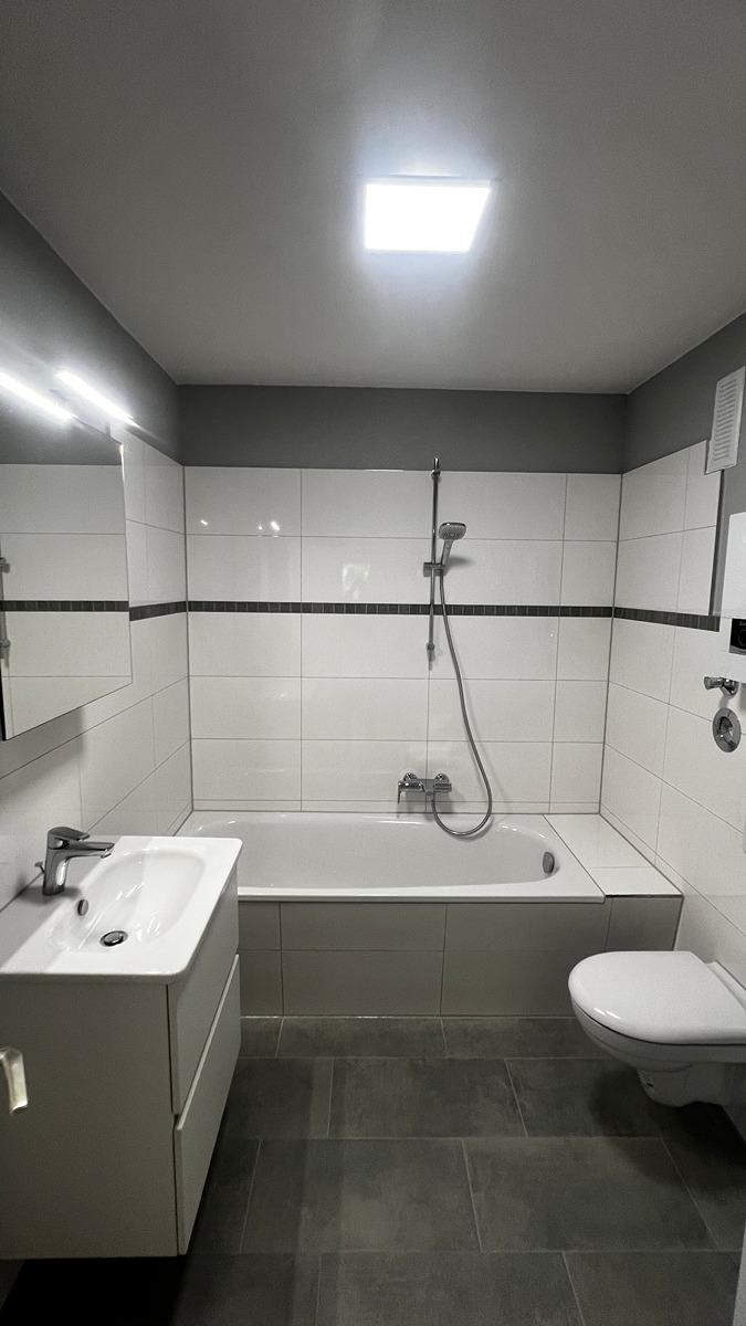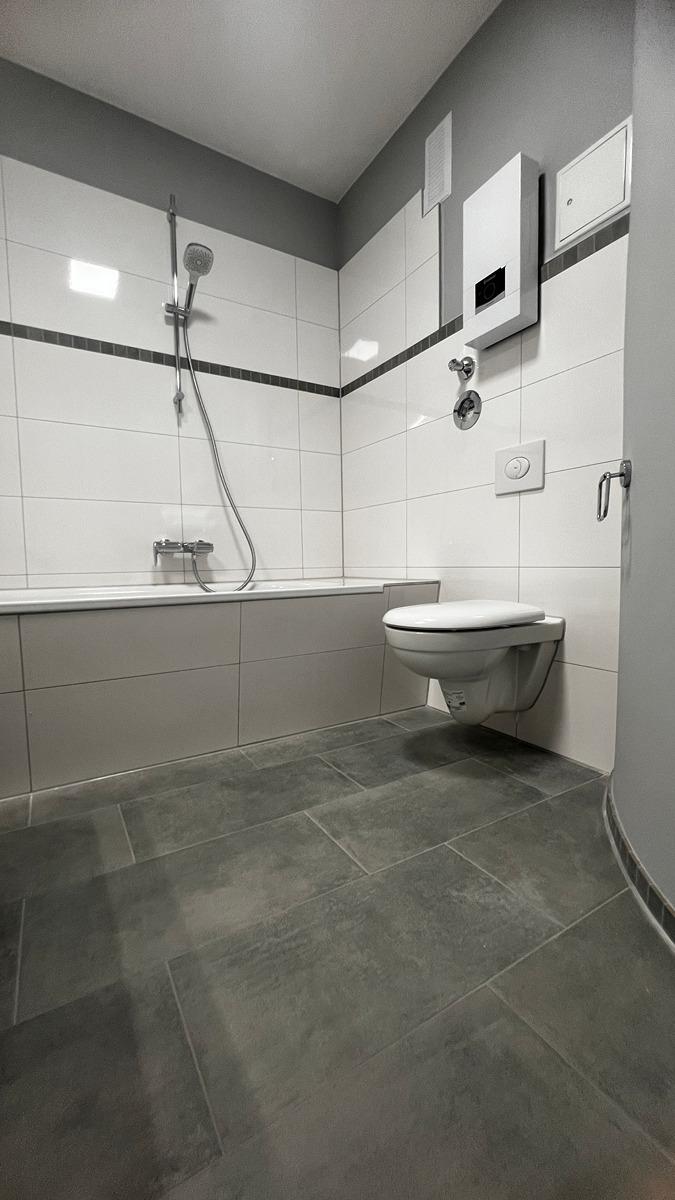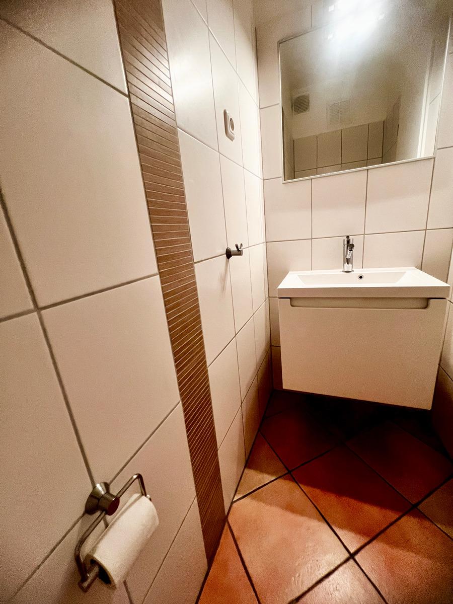Bemerkungen: Im gesamten unteren Wohnbereich (Flur, Küche, Wohnzimmer sowie Wendeltreppe) befinden sich diagonal verlegte Terrakottafliesen. Die Einbauküche besitzt einen Kühlschrank mit Gefrierfach, Herd mit Cerankochfeld und Dunstabzugshaube sowie einen Geschirrspüler. Anschlüsse für Waschmaschine sind vorhanden. Im oberen Wohnbereich wurde Venyl verlegt. Das neue Wannenbad verfügt über einen modernen Waschtisch mit Spiegelschrank sowie einen mit Glimmereffekt gespachtelten Bogen. Das Gäste WC mit Waschbecken wurde ebenfalls gefliest. Die Beheizung der Wohnung erfolgt über eine Fußbodenheizung. Die Warmwasseraufbereitung erfolgt über Durchlauferhitzer in Küche, Gäste WC und Bad. Die Wohnung verfügt über Kabel TV. Zur Wohnung gehört ein trockener Keller sowie ein Gemeinschaftsfahrradkeller.