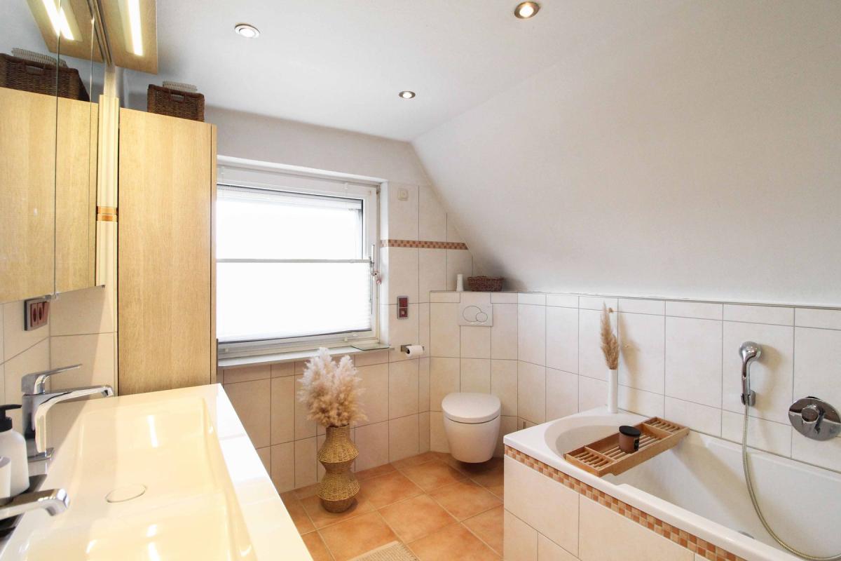 Im Eingangsbereich des Hauses gelangen Sie in die geräumige Küche inkl. Einbauküche (ca. 15 Jahre alt) sowie das angrenzende Esszimmer. Des Weiteren wird ein modernes Gäste-WC und ein Duschbad erreicht. Den zentralen Lebensmittelpunkt bildet das großzügige, lichtdurchflutete Wohn-und Esszimmer, das erst vor ca. 2 Jahren einer stilvollen Modernisierung unterzogen wurde. Im Dachgeschoss befindet sich ein helles Schlafzimmer, ein Kinderzimmer und ein schönes Badezimmer mit Wanne.