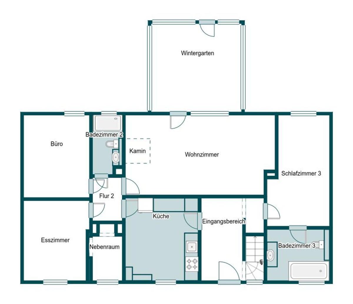 Auf einer großzügigen Wohnfläche von ca. 209,5 m² bietet dieses Objekt genügend Platz für Paare und Familien: Es umfasst 6 Zimmer, darunter 4 potentille Schlafzimmer auf 2 Etagen. 3 Badezimmer mit Dusche oder Badewanne sind ebenfalls Teil des Grundrisses.