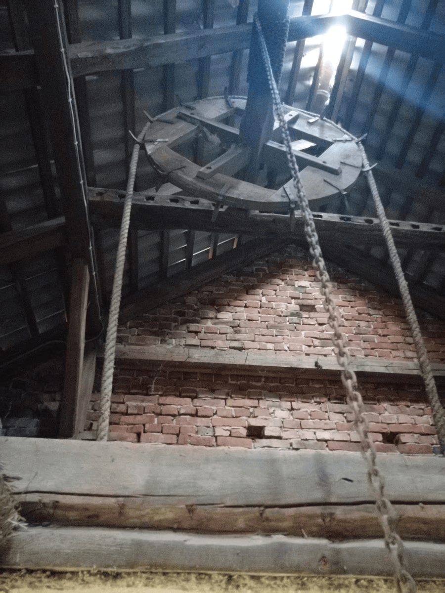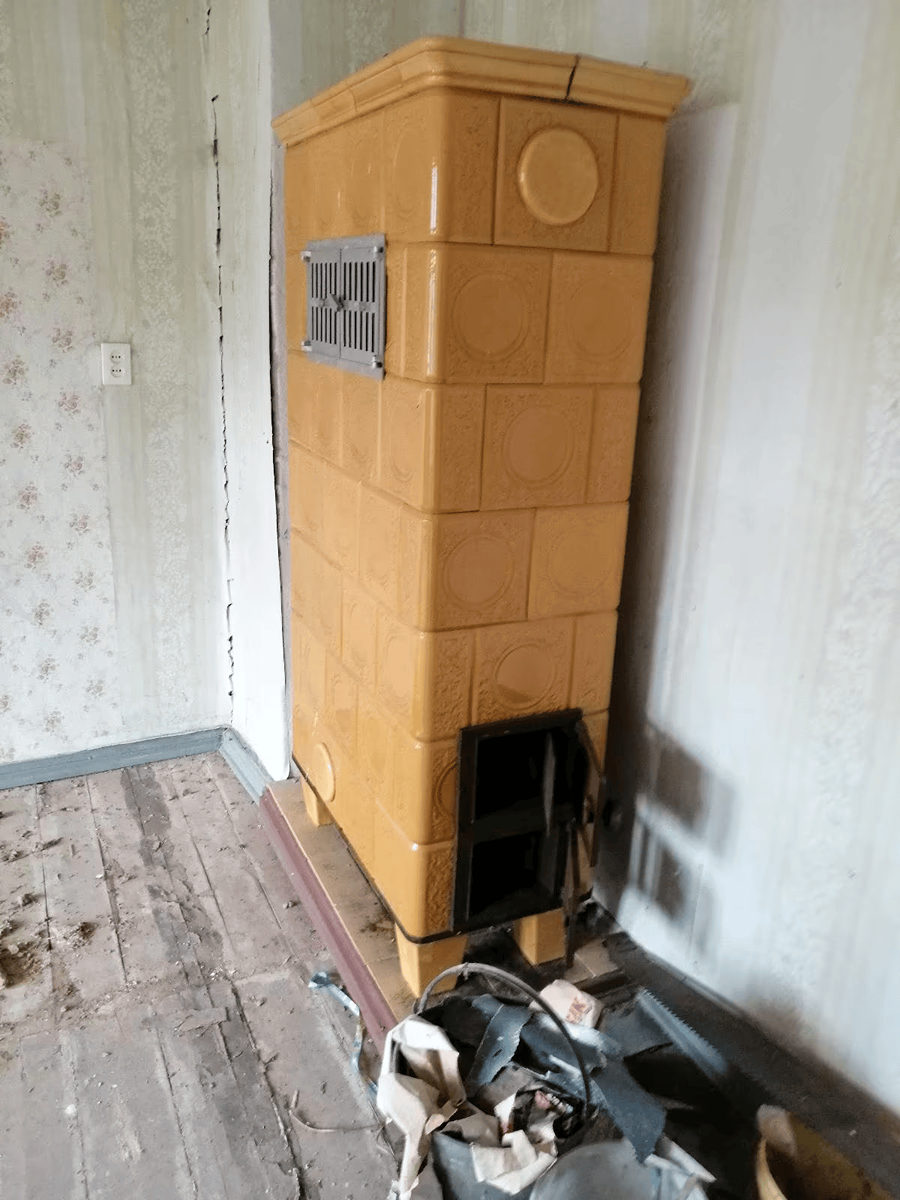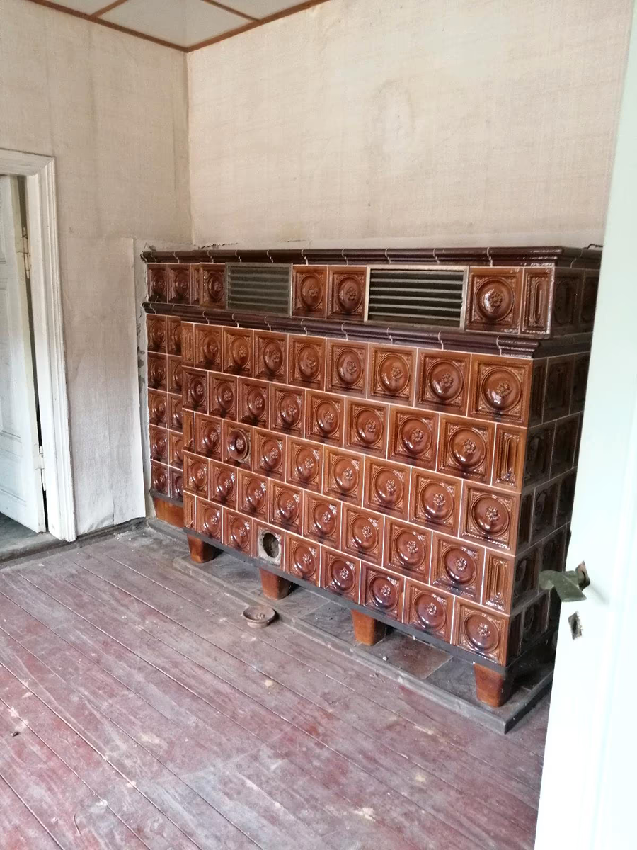 Keine Heizungsanlage vorhanden, außer einem sehr großen verzierten Kachelofen (auf den Bildern zu sehen), der 2/3 der unteren Etage (4 Räume) geheizt hat.