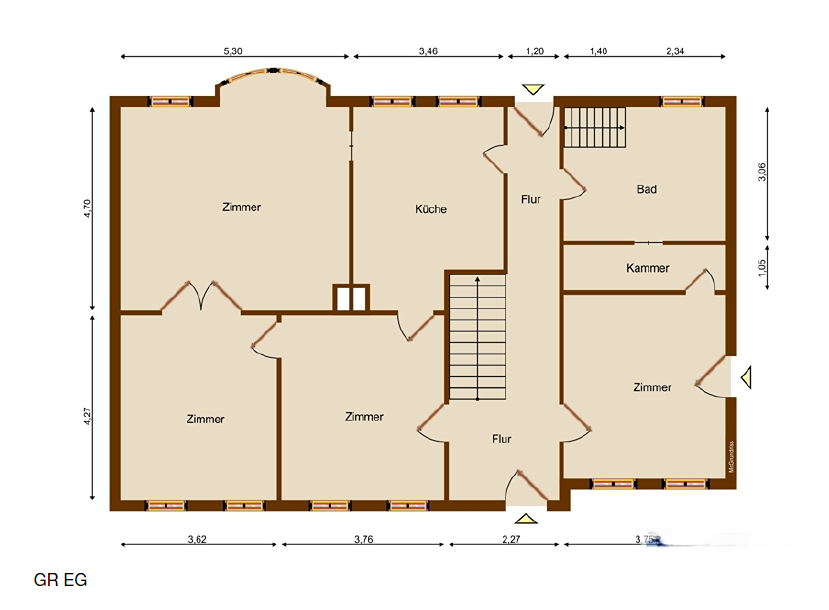 Das Mehrfamilienhaus hat 224m² Wohnfläche auf zwei Etagen.