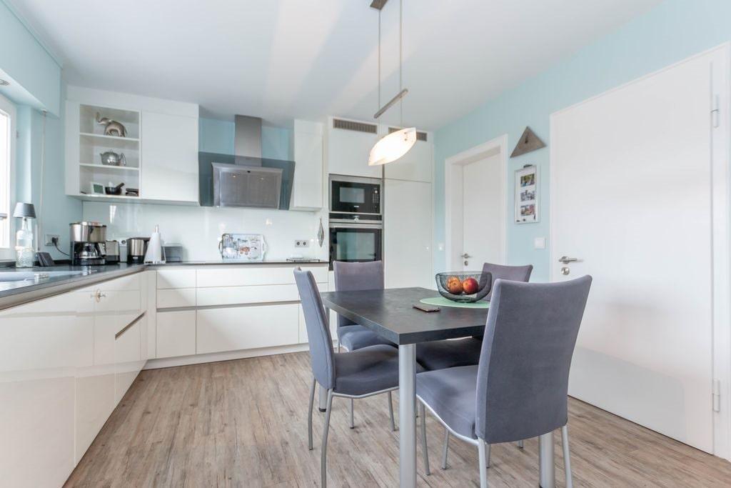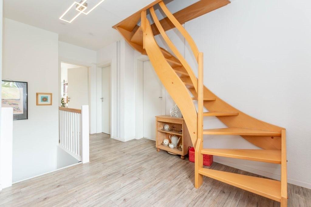 Im Erdgeschoss empfängt Sie die Diele, welche Sie sowohl in die Wohnküche, ausgestattet mit einer neuen, hochwertigen Einbauküche, als auch in das großzügige Wohn-/Esszimmer führt. Von der Wohnküche aus gelangen Sie in den praktischen HWR mit Zugang zum Garten.