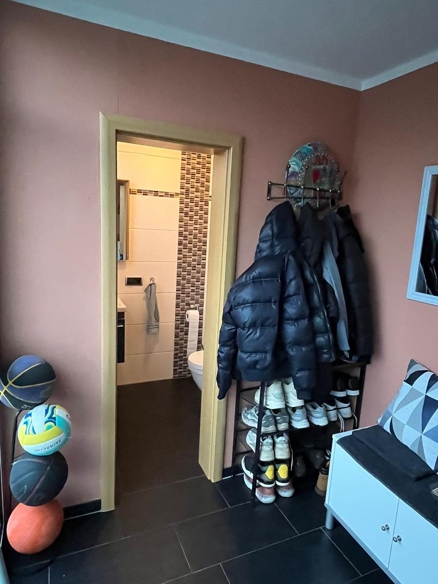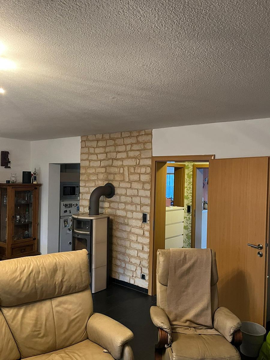 GEBÄUDE: Reihenmittelhaus, beidseitig versetzt angebaut, 7 Meter Hausbreite, 2 Vollgeschosse, Vollkeller mit Gartenausgang. Neue Stromkabel, Heizrohre und neue Bodenbelege (2014) Bad und Gäste-WC neu (2014). Heizung: Ölzentralheizung mit Warmwasserbereitung mit Öltank von 3000 Liter im Keller (Gas ist in der Straße vorhanden, der Kessel ist auch auf Gas umstellbar. Dachboden: Das Haus hat ein Satteldach. Die Geschossdecke ist massiv (Beton). Der große Dachraum ist über eine Einschubtreppe erreichbar. Bei anderen Häusern dieses Haustyps haben die Eigentümer die Treppe bis ins Dach durchgezogen und den großen Dachraum durch Einbau von Dachflächenfenstern wohnlich nutzbar gemacht. ÜBERNAHMETERMIN: Das Haus kann sofort nach Kaufpreiszahlung übernommen werden. Zusammenfassung der Fläche: Wfl. EG/OG 110, Keller Nutzfläche 56 m2 Wohn-/Nutzfläche 166 m2.