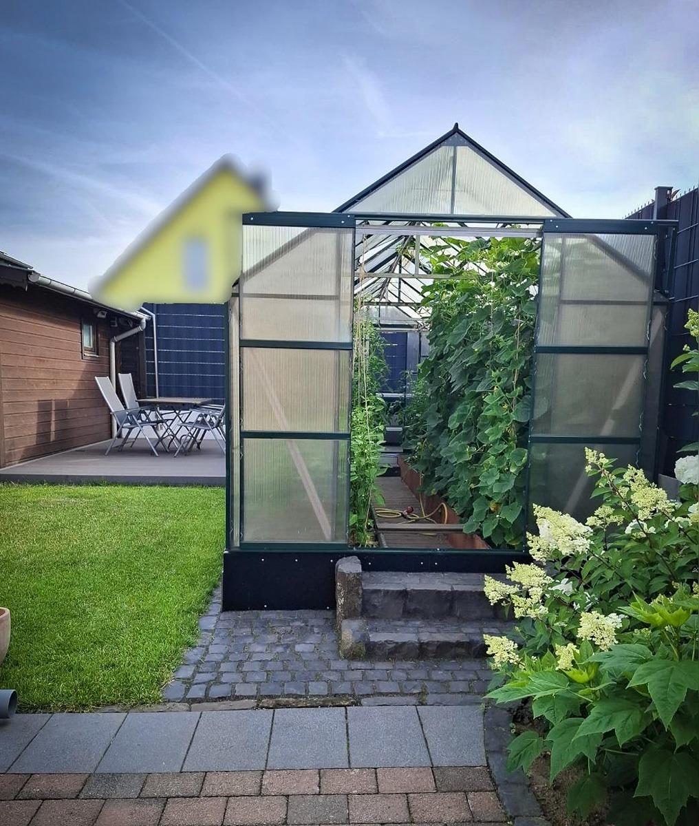 • Garten: Freistehendes Saunahaus, Terrasse, Eingezäunt mit abschließbarem Zugang, großes Gewächshaus