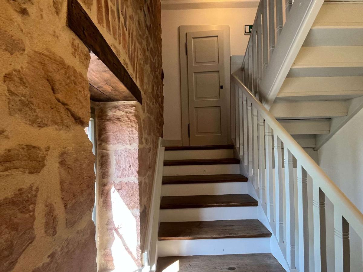 Im Obergeschoss stehen drei geschmackvoll eingerichtete Fremdenzimmer zur Verfügung, jeweils mit eigenem Badezimmer und kleiner Sitzecke. Natursteinwände und ein schöner Dielenboden unterstreichen das authentische Ambiente und schaffen einen hohen Wohlfühlfaktor. Das Dachgeschoss beherbergt ein charmantes Appartement, das mit Dielenboden und Natursteinelementen gestaltet wurde. Es verfügt über einen Wohnbereich mit Küche und Schlafnische, ein separates Schlafzimmer sowie ein modernes Bad mit Dusche – eine gelungene Verbindung aus Ursprünglichkeit und moderner Wohnqualität.