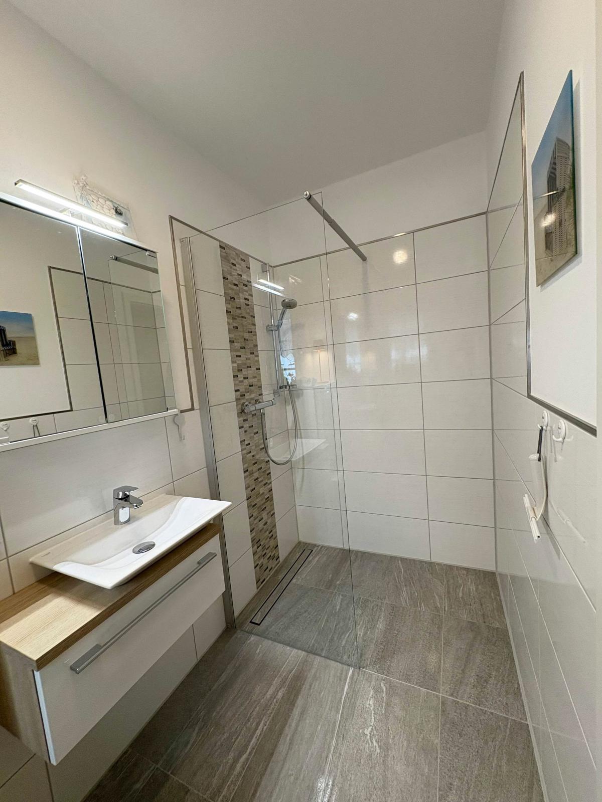 - Die Wohnfläche von ca. 130 qm bietet neben einer geräumigen Diele 4 Zimmer sowie zwei hochwertig ausgestattete Badezimmer mit ebenerdiger Dusche oder Badewanne und WC.
