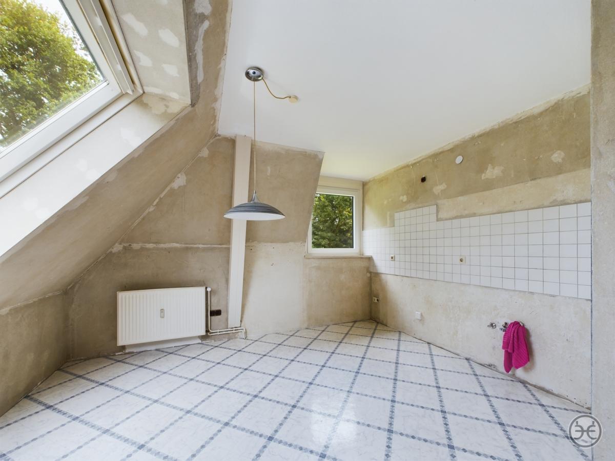 Das Obergeschoss erreichen Sie über den Vorflur im Haupteingang über eine Steintreppe. Hier stehen Ihnen zwei Schlafzimmer, ein Wohnzimmer, eine Küche, ein kleiner Abstellraum und ein Bad mit Waschmaschinen-Anschluss zur Verfügung. Die Räume wurden für eine geplante Renovierung vorbereitet. So wurden in den Wohnräumen an vielen Stellen die Tapeten bereits entfernt. Im Badezimmer wurde z.B. die alte Dusche entfernt. In einem Schlafzimmer und ggf. in der Küche müssten auch noch neue Bodenbeläge verlegt werden. Es müssten also noch gewisse Arbeiten ausgeführt werden, um die Räume zu nutzen. Bedeutet aber, dass Sie mit überschaubaren Handgriffen und Investition die Flächen nach Ihren Vorstellungen gestalten können. Diverse Tapetenrollen, Wandfarbe und ein Waschtisch-Unterschrank für das Bad wären im Kaufpreis ebenfalls bereits enthalten!