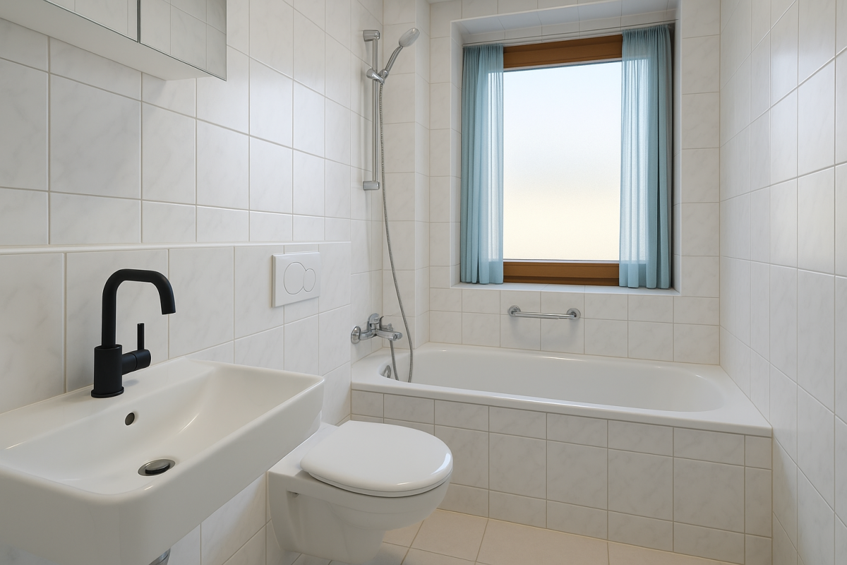 - Badezimmer mit Badewanne, Fenster und Handtuchheizung