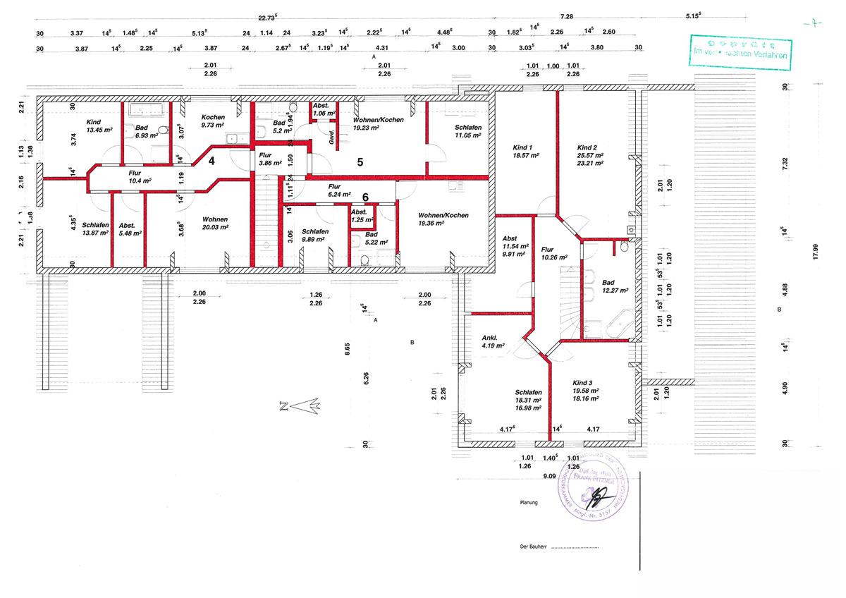 Ca. 245 m² Wohnfläche, aufgeteilt in drei vermietete Einheiten: