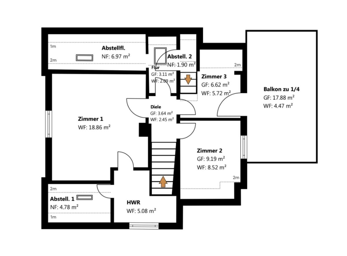 Über den Eingangsbereich gelangen Sie in den Flur, von dem aus links die Küche mit integriertem Essbereich und rechts das großzügige Wohnzimmer erreichbar sind. Ebenfalls im Erdgeschoss befinden sich ein Schlafzimmer, das sich direkt rechts vom Eingangsbereich befindet, sowie das Hauptbadezimmer und ein separates Gäste-WC.