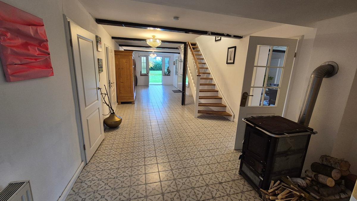 Zudem gibt es einen Holzofen, welcher im Flur steht