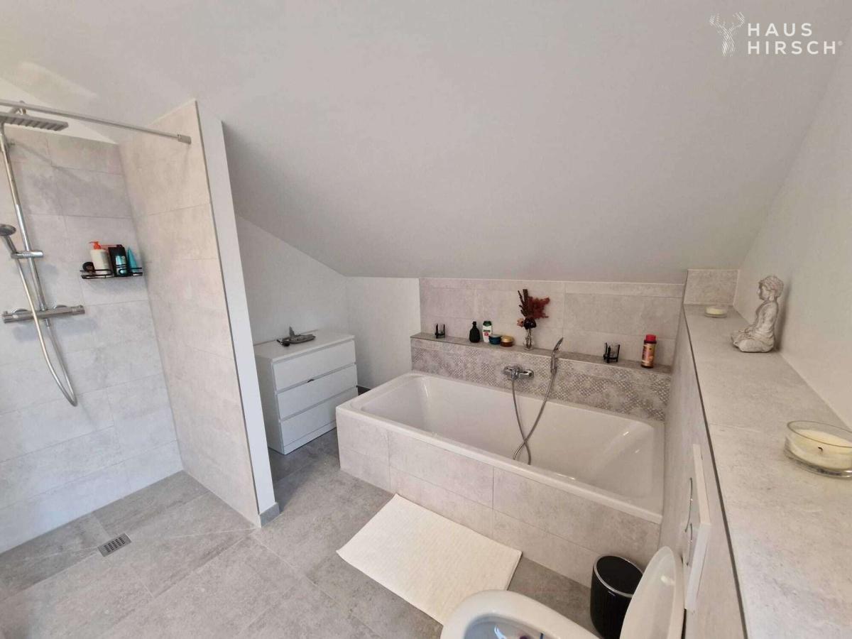 - Tageslichtbad Einheit 1: WC, Waschbecken, Badewanne und bodengleiche Dusche