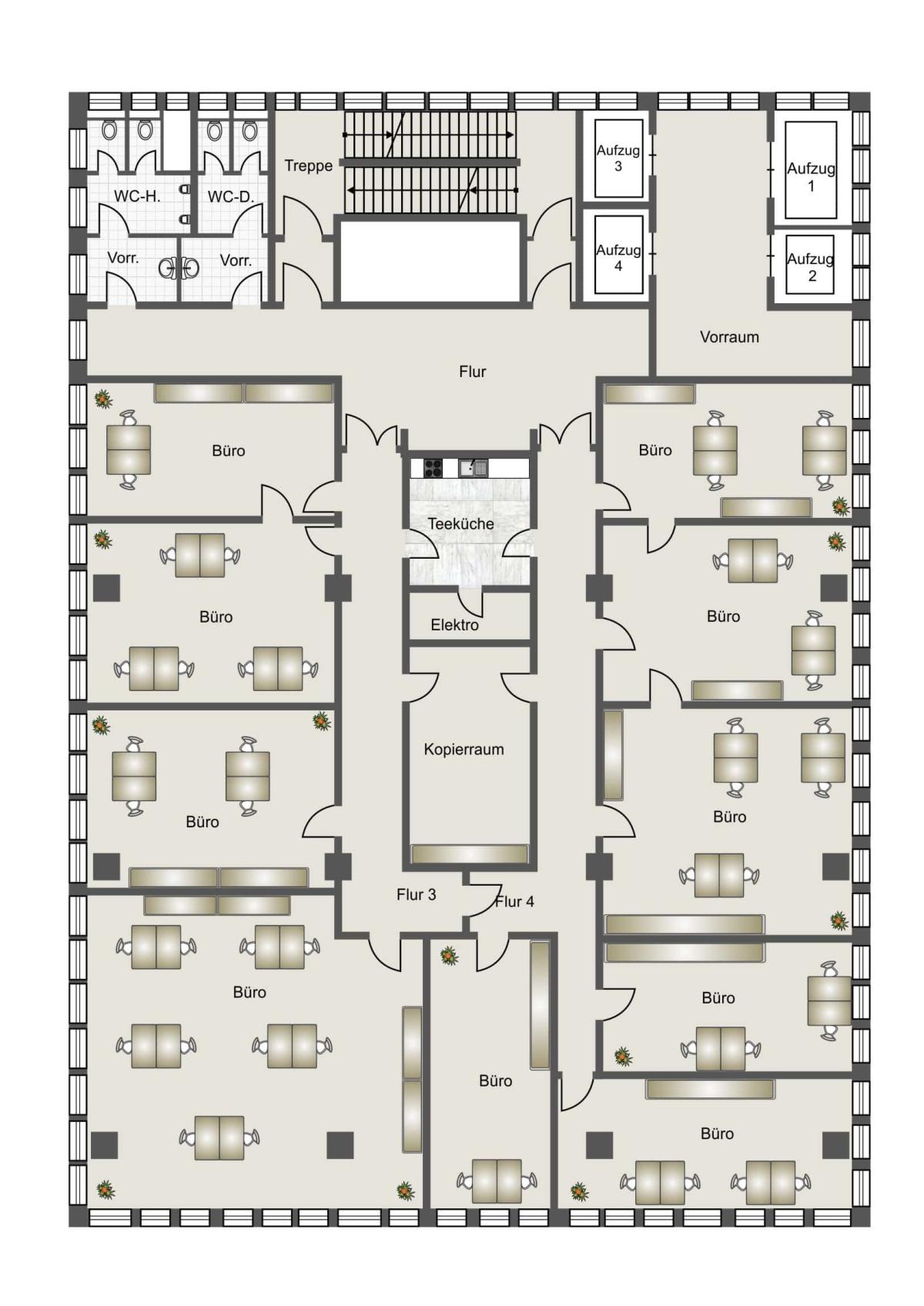 Die Mietflächen befindet sich im 5. Obergeschoss des Gebäudes.