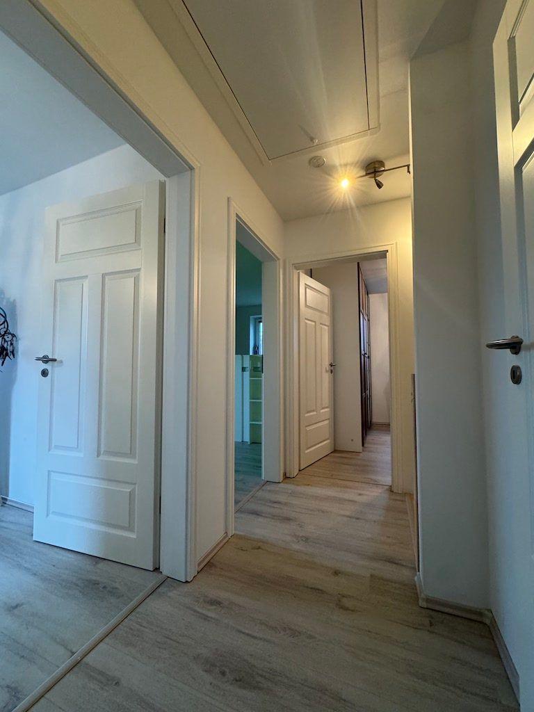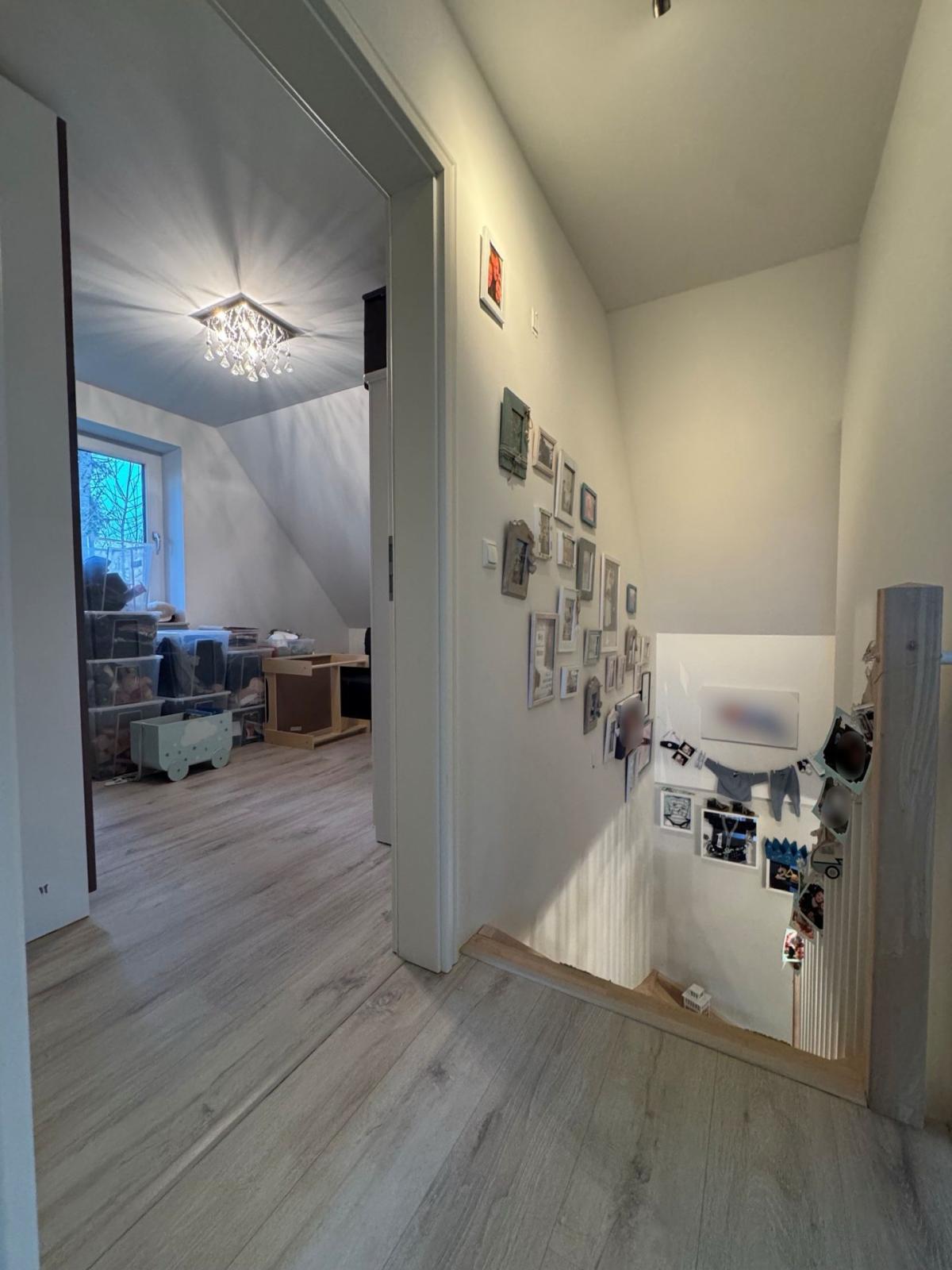 Über die elegante Holztreppe gelangt man in das Obergeschoss, welches über drei weitere Zimmer, sowie ein helles Badezimmer mit Badewanne und separater Dusche verfügt. Der Dachboden ist derzeit nicht ausgebaut.