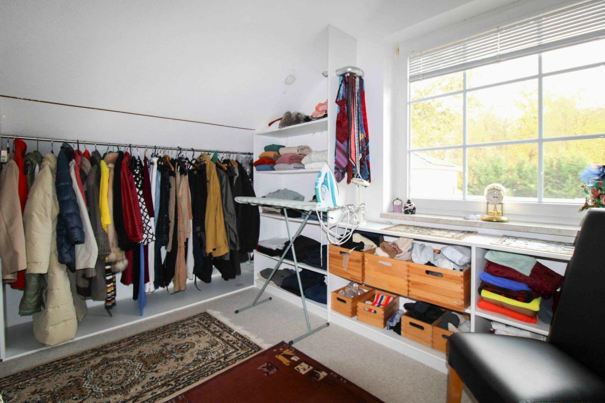 Im DG stehen Ihnen zwei gemütliche Schlafzimmer sowie ein weiteres Zimmer zur Verfügung, das aktuell als Ankleidezimmer genutzt wird, sich jedoch ebenso gut als Homeoffice oder Gästezimmer eignet. Die Schlafzimmer sind zudem mit einer modernen Split-Klimaanlage ausgestattet, die sowohl im Winter für angenehme Wärme als auch im Sommer für erfrischende Kühle sorgt. Durch die Verbindung mit der hauseigenen Photovoltaikanlage arbeitet das System besonders energieeffizient. Das geräumige Tageslichtbadezimmer ist mit einer großen Dusche, einer Badewanne und einem Doppelwaschbecken ausgestattet.