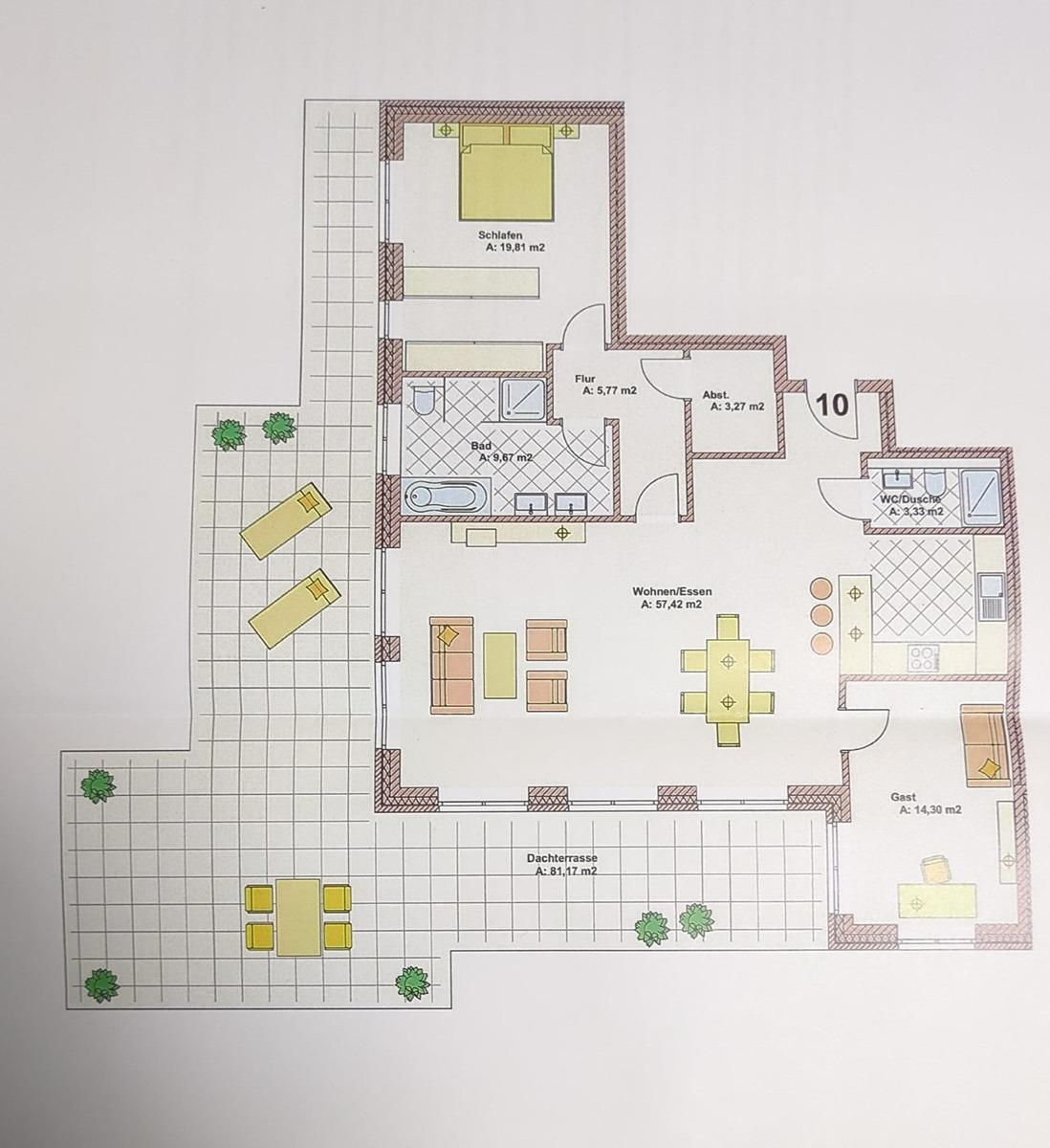 – 154 m² Wohnfläche, 3 Zimmer + Gäste-Bad