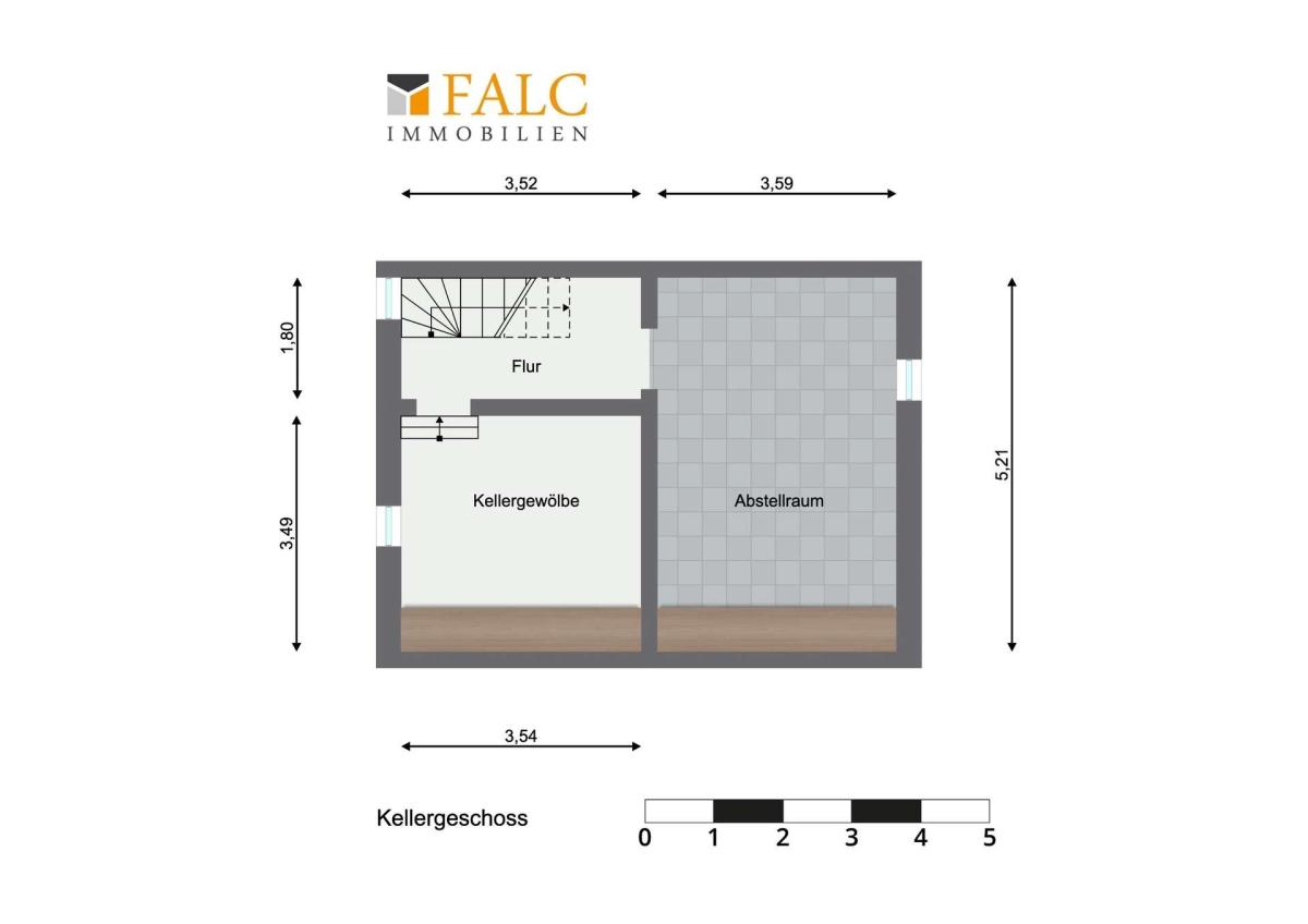 Das Untergeschoss lässt sich vom Erdgeschoss aus erreichen. Hier steht Ihnen ein klassischer, gut erhaltener Gewölbekeller und ein großer Abstellraum zur Verfügung.