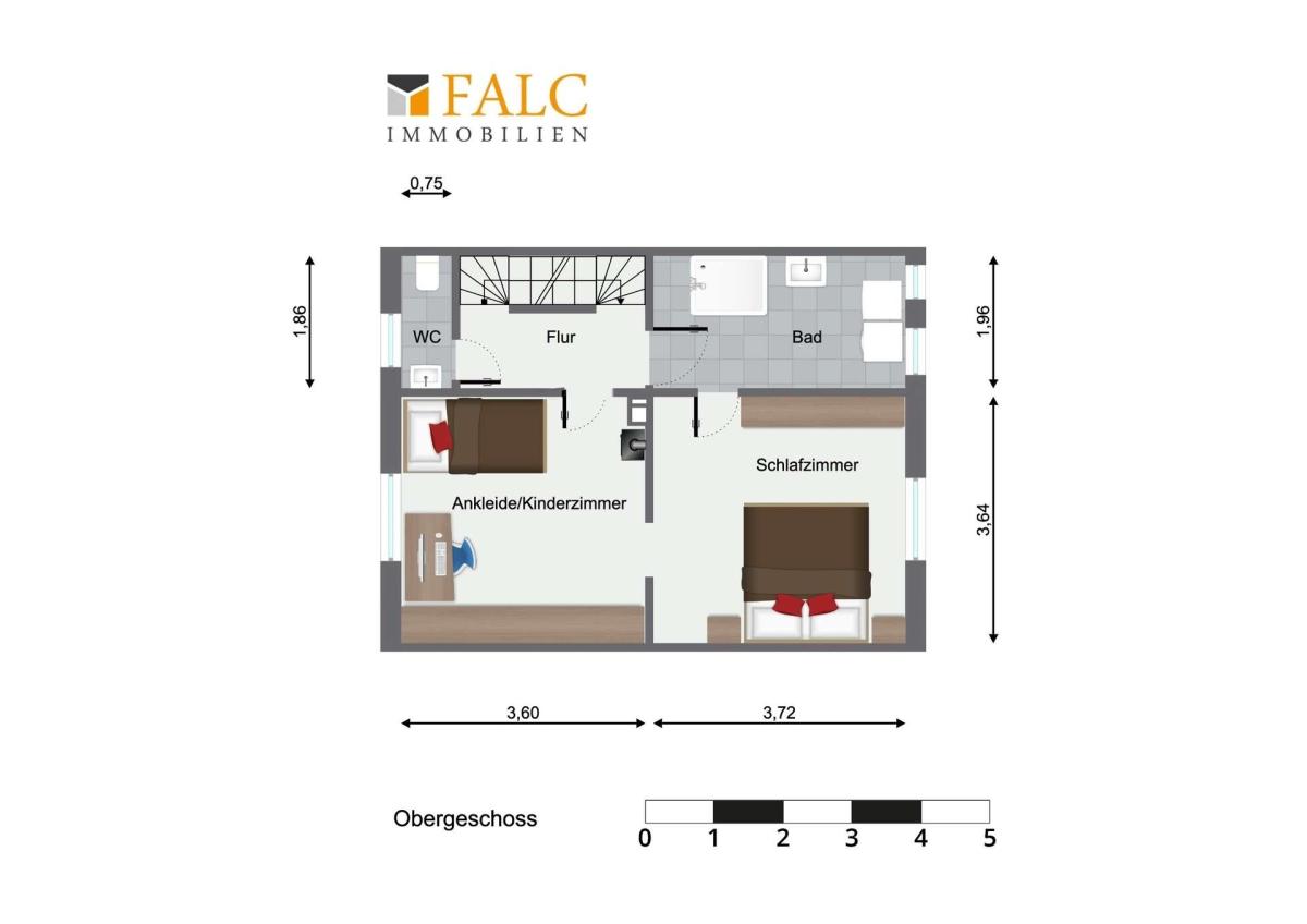 Über die Treppe gelangen Sie in das Obergeschoss. Ihrem persönlichen Rückzugsort. Hier erwarten Sie zwei Schlafräume, die Sie individuell nach Ihren Wünschen gestalten können. Ein modernes, gemeinsames Badezimmer sowie ein separates WC, das schnell erreichbar ist, ergänzen diesen Bereich für eine zügige Morgen- und Abendroutine ideal ab.