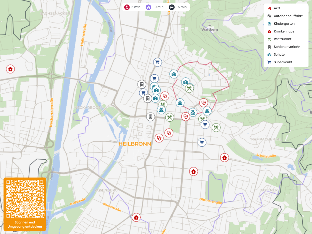 Das angebotene Reihenmittelhaus befindet sich unmittelbar in Heilbronner Stadtnähe und überzeugt vor allem durch seine zentrale und dennoch ruhige Lage. Nur wenige Minuten trennen das Haus vom lebendigen Heilbronner Zentrum mit seinen vielfältigen Einkaufsmöglichkeiten, gemütlichen Cafés, Restaurants und kulturellen Angeboten. Die Innenstadt ist sowohl zu Fuß als auch mit dem Fahrrad oder den öffentlichen Verkehrsmitteln bequem erreichbar, wodurch sich ein urbanes Lebensgefühl mit hoher Wohnqualität verbindet. Trotz der Nähe zum Zentrum liegt das Haus in einer angenehm ruhigen Wohnstraße, die ein familienfreundliches und entspanntes Umfeld bietet.